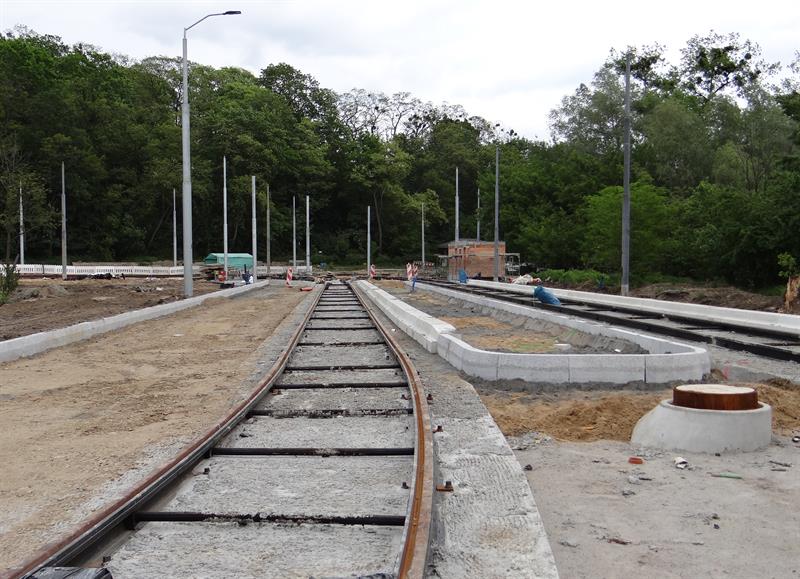 Aktualnie trwają tam roboty ziemne przed ułożeniem i montażem ostatnich odcinków szyn na dojeździe do samej pętli od wysokości skrzyżowania z ul. Wojciechowskiego do ich włączenia po nowym w śladzie dalej wzdłuż ul. Arkońskiej w kierunku stadionu Arkonii i Arkonki. Na betonowej podbudowie osadzone zostały zmontowane w minionych tygodniach fragmenty torów wraz z elementami zasilania i automatyki rozjazdów.