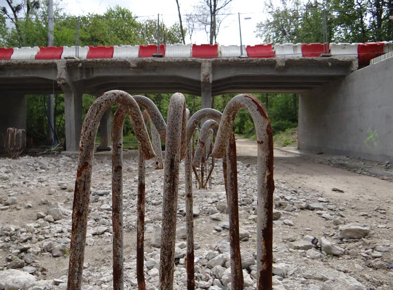 Na tej ostatniej też wykonane zostały w większości zlecone Eurovii dodatkowo niezbędne roboty przy poszerzeniu i naprawie jej nawierzchni, w tym jezdni. A w połowie maja na ul. Międzyparkowej przeprowadzone zostały testy przejezdności nią autobusów komunikacji miejskiej. Tędy właśnie wytyczony będzie wkrótce objazd dla autobusów linii 80. A dokładnie w momencie, kiedy drogowcy wrócą ponownie - po wielomiesięcznym przestoju - na plac przebudowy w rejon poniemieckiego wiaduktu drogowego. Ten w połowie już jest wyburzony od zimy. Teraz rozebrany zostanie pozostała jego część, włącznie z filarami - ta, którą autobusy jeszcze teraz kursują.Według projektu zamiennego, w jego miejsce od podstaw wzniesiona będzie nowa konstrukcja.
