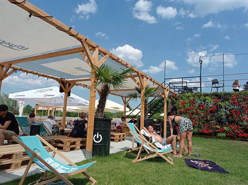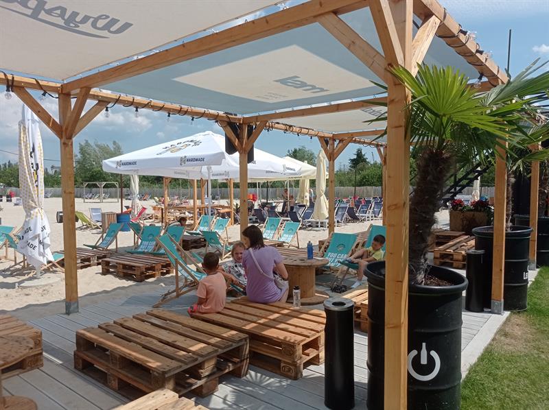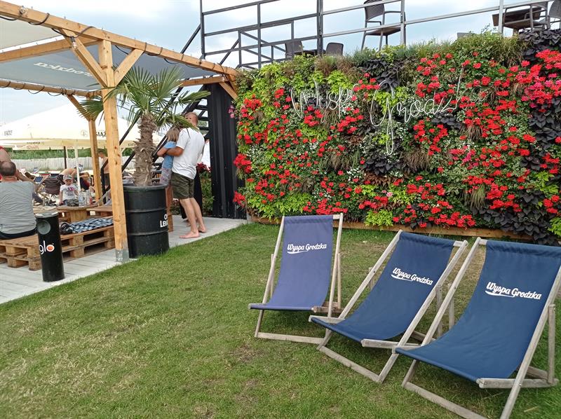 Miejsce planowanej zieleni (łąki oraz nasadzenia parkowe) oraz niedoszłej budowy dwóch kolejnych budynków (w tym również gastronomii) zastąpiono nadmorskim piaskiem. Tak przy marinie powstała miejska plaża – współczesna Miejska Strefa Letnia.