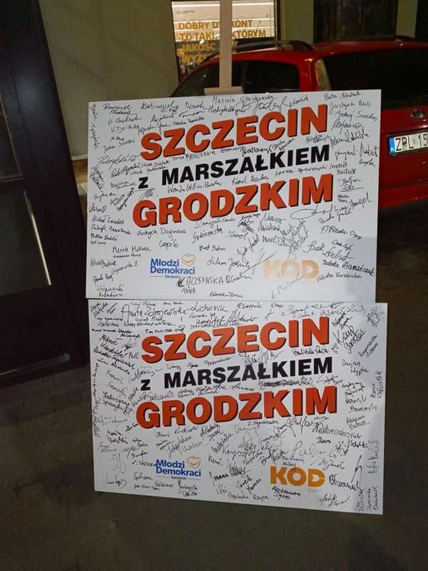 Weekendowa akcja zbierania podpisów poparcia dla prof. Grodzkiego odbyła się pod hasłem „Szczecin z marszałkiem Grodzkim”. Zorganizowało ją Stowarzyszenie Młodzi Demokraci wspólnie z Komitetem Obrony Demokracji. Polegała na zbiórce podpisów w dwóch punktach miasta: przed Galerią Kaskada i w pobliżu Galaxy.
