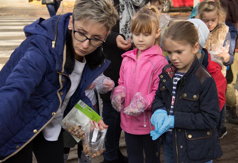 Przez cały piątek uczniowie od pierwszych do ósmych klas oraz przedszkolaki angażowały się w tę akcję. Dzieci przyniosły do szkoły cebulki, a nauczyciele zorganizowali sprzęt i instruktaż.
