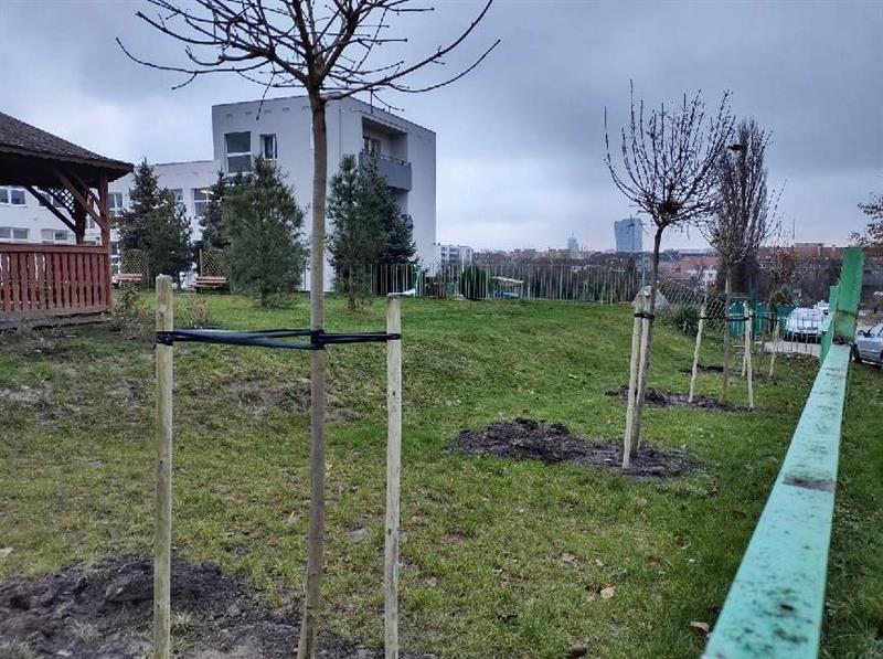 – Pojawiło się dziesięć klonów, a na 178 metrach kwadratowych przyszkolnego terenu posadzono krzewy: laurowiśnia, Thuja Danica, jałowce pośrednie płożące, róże rabatowe, buki purpurowe, trzmieliny i głogownik – wymienia Piotr Zieliński ze spółki Szczecińskie Inwestycje Miejskie. – Nasadzone rośliny mają minimum 2 lata. W ramach prac wymieniono podłoże, zastosowano również system nawadniający pod drzewa.