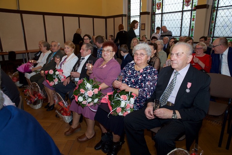 W gronie jubilatów znaleźli się państwo: Irena i Janusz Adamczewscy, Halina i Mirosław Biniaszek, Ewa i Tadeusz Czarnota, Irena i Stefan Horodyscy, Władysława i Zenon Kawalec, Wacław i Ryszard Michałek, Władysława i Tadeusz Momot, Jadwiga i Józef Sawicz, Krystyna i Mikołaj Szeliga, Jadwiga i Jan Parniak, Anna i Kazimierz Szydlik, Teresa i Franciszek Trzcińscy. W oprawie artystycznej wystąpił chór „Melodia” pod kierunkiem Bogdana Komorowskiego oraz akordeonista Jakub Kowalski. Nie zabrakło lampki szampana oraz zaśpiewano tradycyjne „Sto lat”.