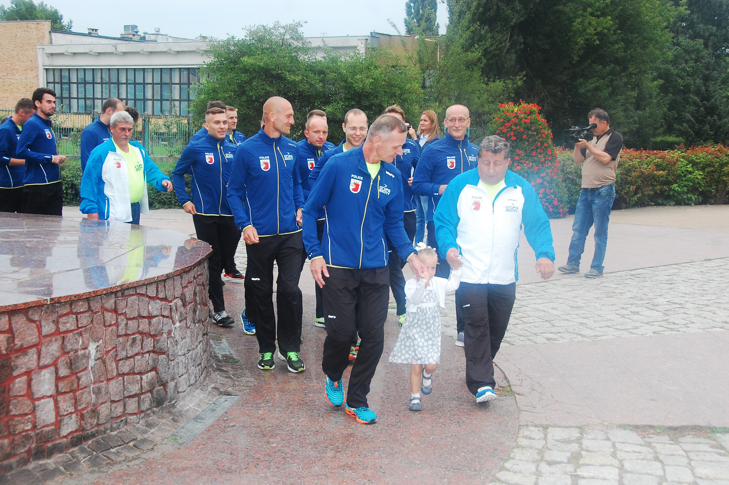 Pielgrzymka - czwarta kolejna - wyruszyła w Policach spod pomnika Jana Pawła II, a honorowym starterem była kilkuletnia Klementynka. To właśnie w jej intencji pobiegła ostatnia z pielgrzymek, modląc się o pomyślny przebieg operacji. Jak widać na zdjęciu, dziecko czuje się bardzo dobrze i rozwija się dobrze.