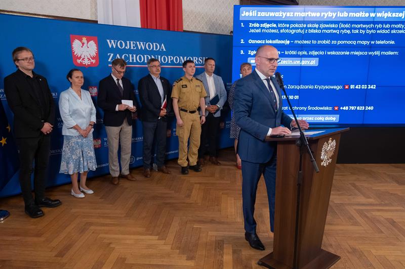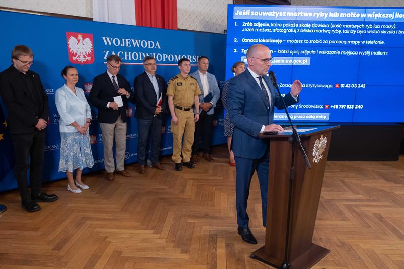 - Mamy dopiero początek lata. Ciepłe dni i niskie stany wód dopiero przed nami. Musimy mieć świadomość, że taka sytuacja może się powtórzyć. Dlatego w trakcie posiedzenia sztabu kryzysowego poprosiłem Wojska Obrony Terytorialnej, aby były gotowe do sformowania pomocy, gdyby ilość śniętych ryb się powiększyła - mówił Adam Rudawski, wojewoda Zachodniopomorski. - Jesteśmy więc przygotowani na podjęcie większej ilości martwych ryb, gdy zajdzie taka potrzeba.