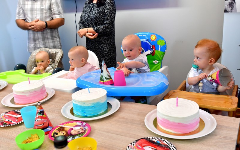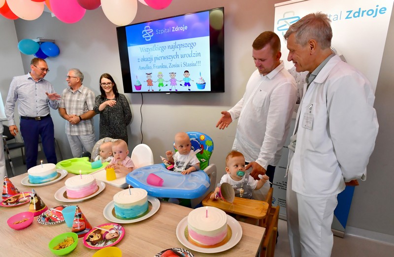 Każde z dzieci otrzymało od szpitala własny tort, a także upominki przygotowane przez Fundację Szyjemy dla Dzieciaków z Oddziałów Szpitalnych. W uroczystym świętowaniu urodzin maluchów wzięli udział m.in. lekarze, którzy zajmowali się mamą i dziećmi w czasie ciąży i porodu, i nadal opiekują się czworaczkami.