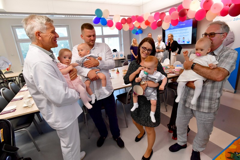 - Rok minął bardzo szybko, ale bardzo dobrze. Dzieciaki są zdrowe, przechodziły tylko katary, więc jest wszystko w porządku i jesteśmy szczęśliwi, że to się tak układa – powiedziała we wtorek obecnym na uroczystości w szpitalu dziennikarzom mama czworaczków Natalia Ratomska. Dodała, że wraz z mężem przenieśli do domu "szpitalny rytm" dnia, który pomaga w opiece nad dziećmi. Zapytana, jak dużo czasu potrzeba, aby wyjść na spacer z całą czwórką, odpowiedziała, że przygotowanie maluchów zajmuje około godziny.