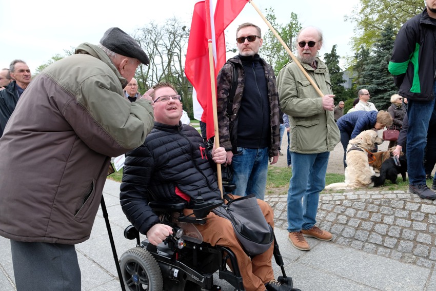 - Jak co roku pierwszego maja spotykamy się tu po to, aby dać świadectwo godności pokoleń, które swoją pracą podniosły z ruin nasz kraj - rozpoczęto spotkanie. - A także po to, aby dać nadzieję na godne życie tym, którzy dzisiaj swoją ciężką pracą utrzymują rodziny i tworzą nasze miasto na co dzień. Spotykamy się tu po to, aby Polska nie była krajem, w którym ludzie muszą liczyć na jałmużnę za świński ryj. W czarnym kolorze srebrnych wież o smaku sowich ośmiorniczek. Żądamy jako suweren, aby aparat państwa spełniał swoją rolę i dawał ochronę godności człowieka.