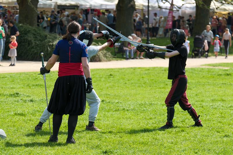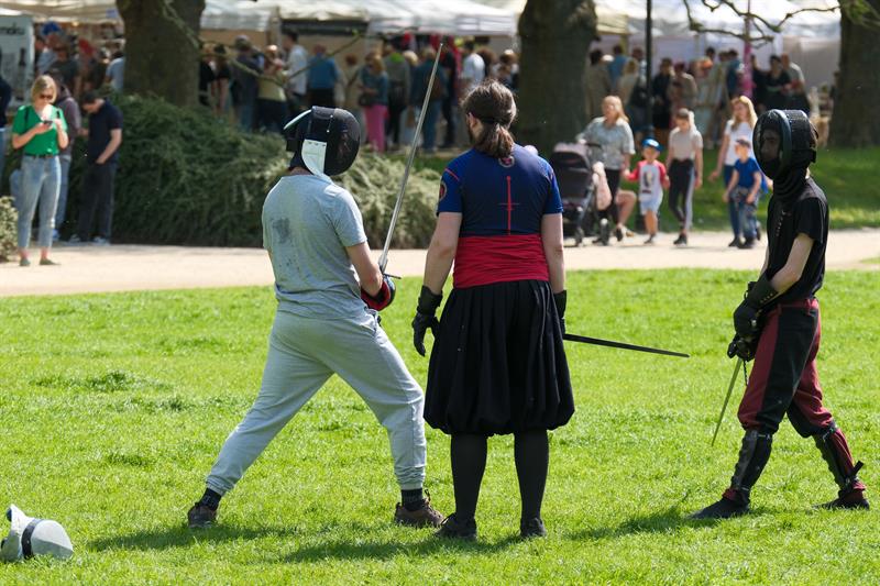 Szczególną atrakcją był pokaz treningu wojowników – grupa pasjonatów sztuk walki ćwiczyła władanie mieczem, budząc zainteresowanie przechodniów. Ich zgrane ruchy i historyczne stroje przyciągały wzrok, szczególnie dzieci, które podziwiały wojowników niczym bohaterów z bajek.