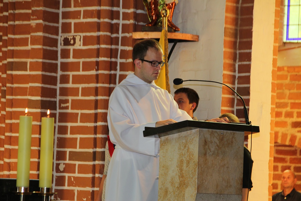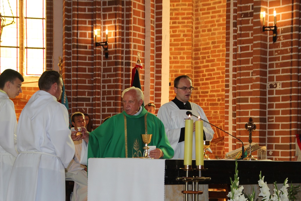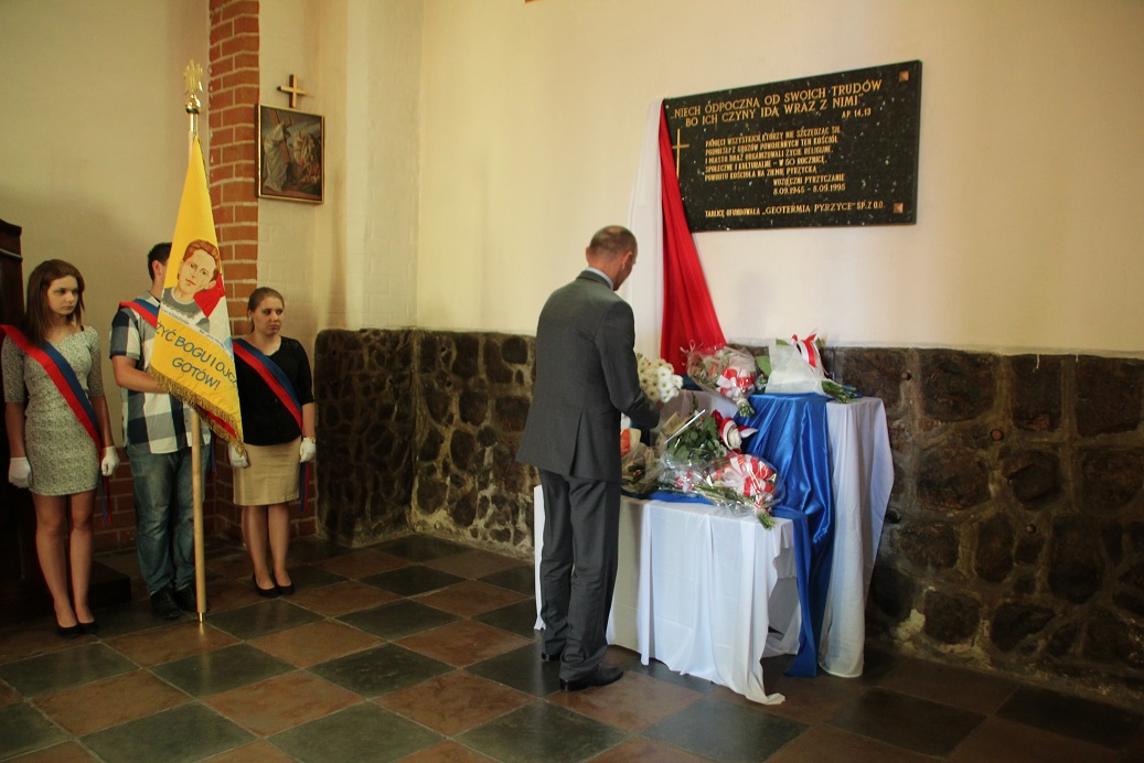 – W przekazach jasno wybrzmiewa fakt, że wielu ludzi nie chciało osiedlać się w miejscowościach, w których nie było katolickiego księdza. Trudno więc uznać za początek polskości tutaj inną datę, niż odprawienia pierwszej mszy – mówi Remigiusz Pajor-Kubicki, prezes Zarządu Diecezjalnego KSM. Uroczystej mszy, w której udział wzięli przedstawiciele lokalnego samorządu oraz liczne poczty sztandarowe przewodniczył ks. Eugeniusz Śpiewak SChr, duszpasterz parafii pw. św. Ottona, w której odbywała się uroczystość, a także jej wikariusz w latach 60. W homilii wielokrotnie odwoływał się do swoich wspomnień, przypomniał także historię odradzania się katolickiej wiary w Pyrzycach.