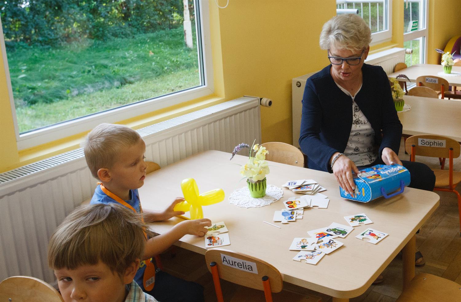 W piątek sporo się działo w PP 18, bo wizyta pani kurator, która tu otwierała nowy rok szkolny, a właściwie przedszkolny, przyciągnął też sporą grupę dziennikarzy. Dzieci zatem udzielały wywiadów, niektóre były speszone mikrofonami, inne z uśmiechem na twarzy opowiadały w jakiej będą grupie.