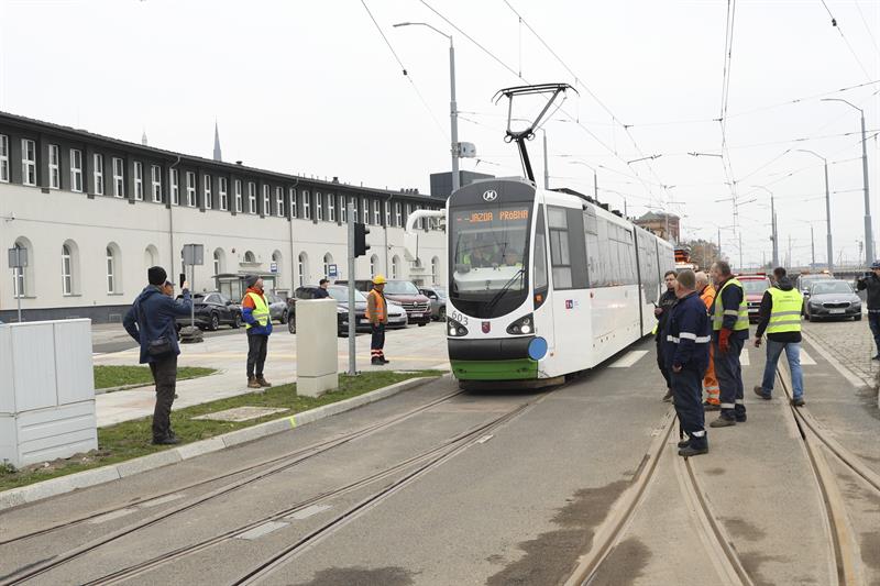 Po raz pierwszy od zakończenia prac modernizacyjnych tramwaj przetestował nowo wybudowane tory na ulicy Dworcowej i Kolumba. Próbny przejazd miał na celu sprawdzenie funkcjonowania torowiska, sygnalizacji oraz innych elementów infrastruktury, które powstały w ramach remontu ulicy Kolumba. Testy przeprowadziły zespoły techniczne oraz przedstawiciele Zarządu Dróg i Transportu Miejskiego.