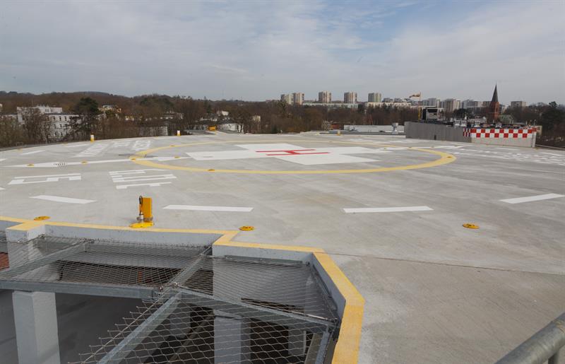 Przypomnijmy, że lądowisko to powstało na dachu nowego, pięciokondygnacyjnego budynku. Budynek mieści przede wszystkim oddziały zakaźne i poradnie specjalistyczne. Ale powstały także: łącznik do m.in. zakładu diagnostyki obrazowej i głównego szpitalnego oddziału ratunkowego w budynku „M”. Dzięki temu pacjenci przetransportowani tu śmigłowcem ratunkowym szybko trafią tam, gdzie otrzymają potrzebną im pomoc. Inwestycja kosztowała prawie 100 milionów złotych.