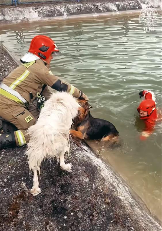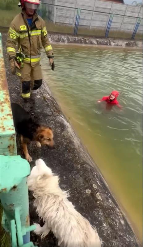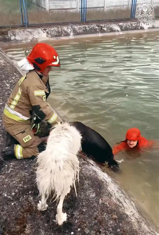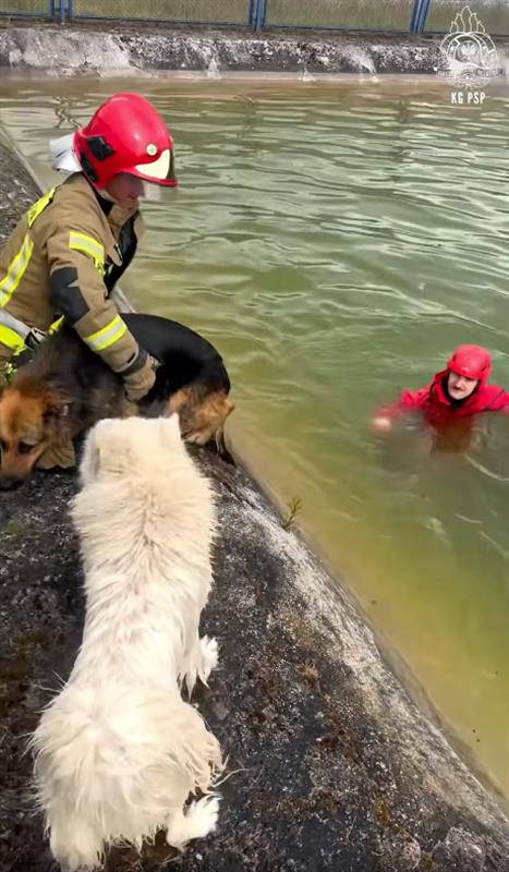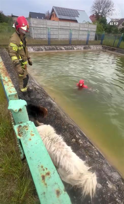 - Zostaliśmy wezwani na ratunek psu, który nie może się wydostać z basenu przeciwpożarowego przy ul. Drewnianej. W trakcie działań ustalono dość niezwykły przebieg zdarzenia. Okazało się, że biały pies, który zobaczył swojego towarzysza w potrzebie, zaczepił przypadkowego przechodnia. Szczekając, doprowadził go do przyjaciela, który pływał już ostatkiem sił. Ten człowiek wezwał nas na pomoc. Gdy przybyliśmy na miejsce, biały pies wskoczył do basenu. Tak bardzo chciał pomóc, wydostać się z pułapki, swojemu towarzyszowi - relacjonuje kpt. Bartosz Janicki.