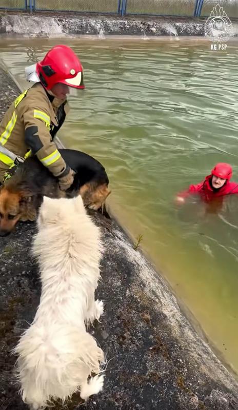 Psy okazały się bardziej 'ludzkie' od wielu ludzi. Podziękowanie dla pana, który nie zlekceważył psiego proszenia o pomoc i oczywiście strażaków, którzy wykonali dobrą robotę. Psi przyjaciele wybrali wolność, po takim stresie im się należy.