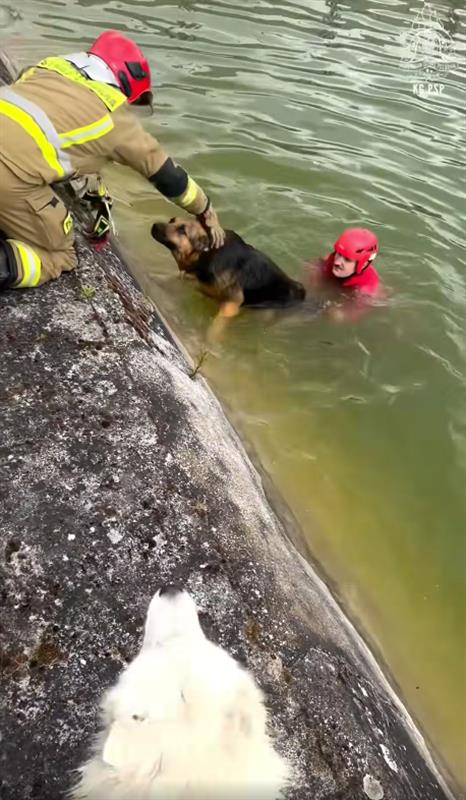 Biały pies ze szczecińskiego Wielgowa na ratunek swemu kudłatemu przyjacielowi wezwał ludzi: najpierw przypadkowego przechodnia, a ten - strażaków. „Dzięki szybkiej interwencji strażaków oraz bohaterskiej postawie jednego z czworonogów, akcja zakończyła się pełnym sukcesem!" - ocenia KM PSP w Szczecinie.