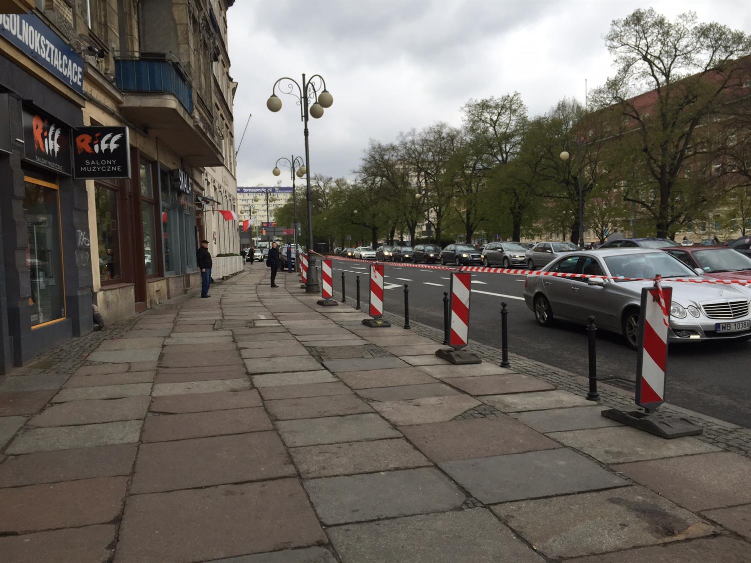 Kolejnych kilkadziesiąt samochodów przegonionych z centrum. A co z dostawą towaru do sklepów? Chodnik jest na tyle szeroki, że mieściły się i samochody, i piesi.