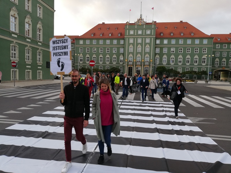 ..."poniedziałek, godz. 18 – pl. Orła Białego: PARADA PIESZYCH. Start pl. Orła Białego, koniec pl. Armii Krajowej. Piesza masa krytyczna, podczas której organizatorzy rozwiną ogromne, symboliczne przejście dla pieszych koło Urzędu Miasta a także zrewitalizują trawnik na jednej ze szczecińskich ulic."....