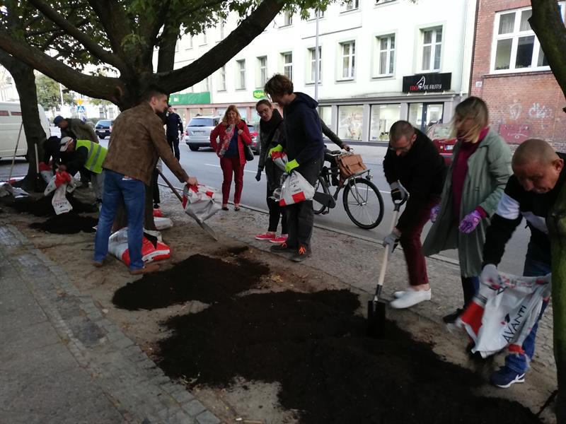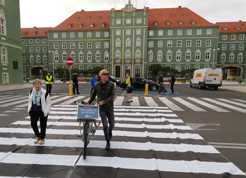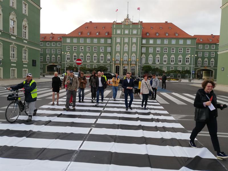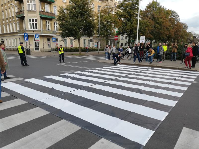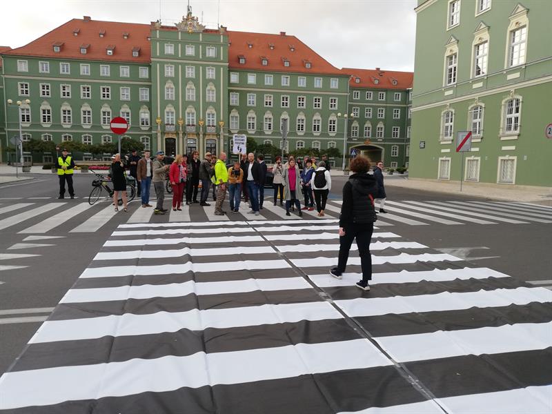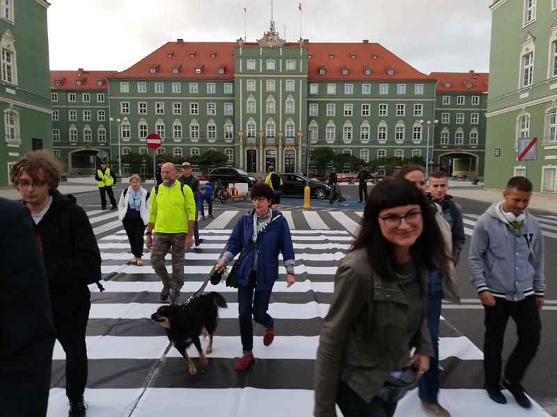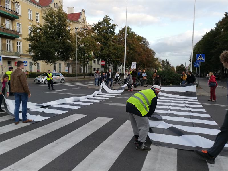 Jego szczecińscy uczestnicy potraktowali to wezwanie bardzo dosłownie. I poszli - na wezwanie Stowarzyszenia "Rowerowy Szczecin" - w Paradzie Pieszych (tzw. piesza masa krytyczna) z pl. Orła Białego przed Urząd Miasta. Na finał, zorganizowali tymczasowe przejście przez ul. Felczaka wprost pod magistrat. Czyli rozwinęli brakujące pasy, które w tym punkcie miasta bardzo ułatwiłyby życie. Przy tej samej ulicy także założyli trawnik: na rozjeżdżone klepisko pod głogami narzucając prawie 100 litrów żyznej ziemi, a na obrzeżu sadząc wrzosy. Aby symbolicznie - jak mówiła Kamila Grochowicka, prezeska "Rowerowego Szczecina" - zrewitalizować zieleńce zdegradowane przez nielegalnie parkujące samochody.