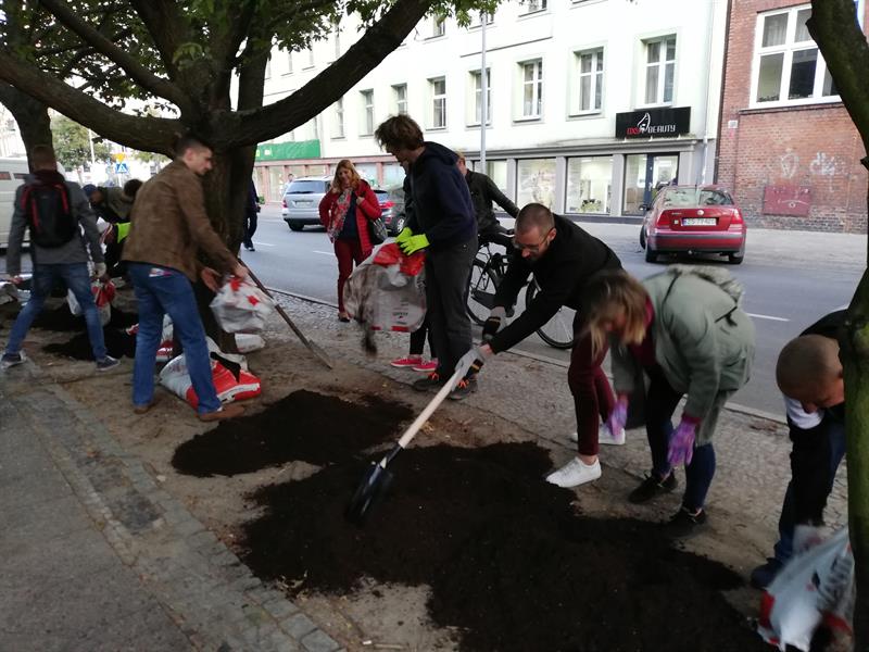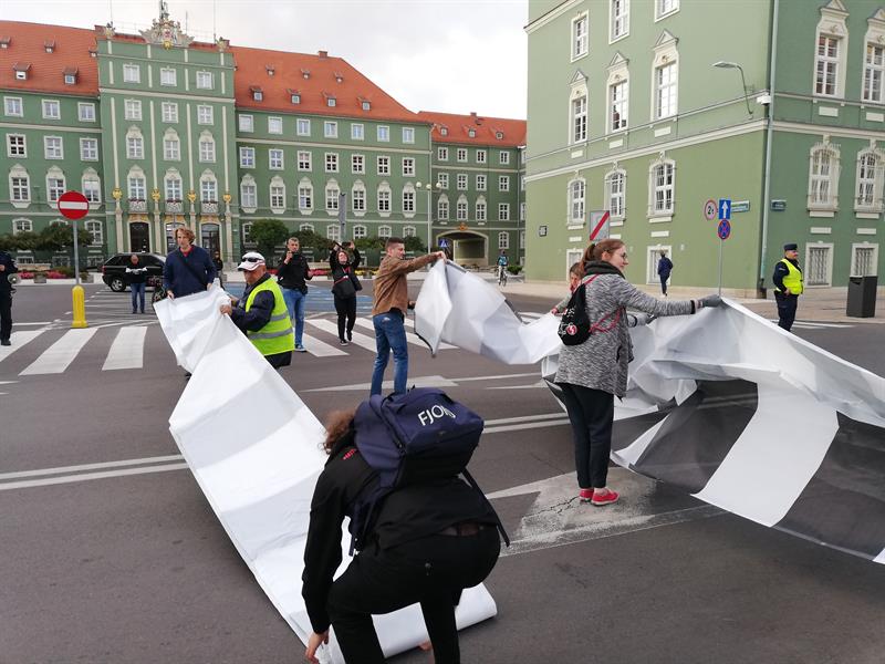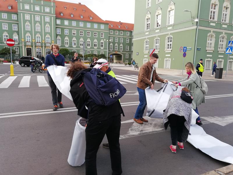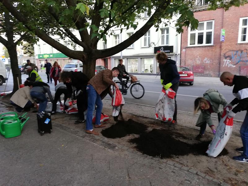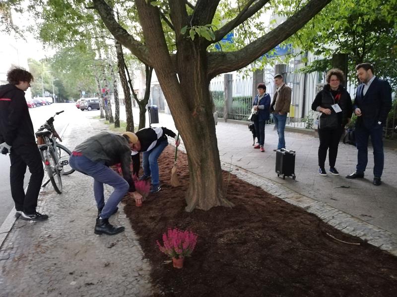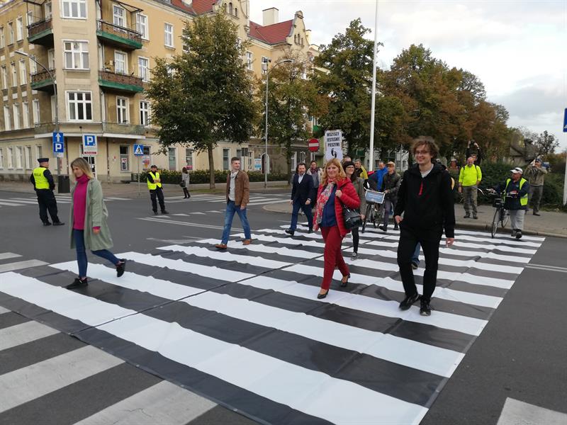 Jego szczecińscy uczestnicy potraktowali to wezwanie bardzo dosłownie. I poszli - na wezwanie Stowarzyszenia "Rowerowy Szczecin" - w Paradzie Pieszych (tzw. piesza masa krytyczna) z pl. Orła Białego przed Urząd Miasta. Na finał, zorganizowali tymczasowe przejście przez ul. Felczaka wprost pod magistrat. Czyli rozwinęli brakujące pasy, które w tym punkcie miasta bardzo ułatwiłyby życie. Przy tej samej ulicy także założyli trawnik: na rozjeżdżone klepisko pod głogami narzucając prawie 100 litrów żyznej ziemi, a na obrzeżu sadząc wrzosy. Aby symbolicznie - jak mówiła Kamila Grochowicka, prezeska "Rowerowego Szczecina" - zrewitalizować zieleńce zdegradowane przez nielegalnie parkujące samochody.