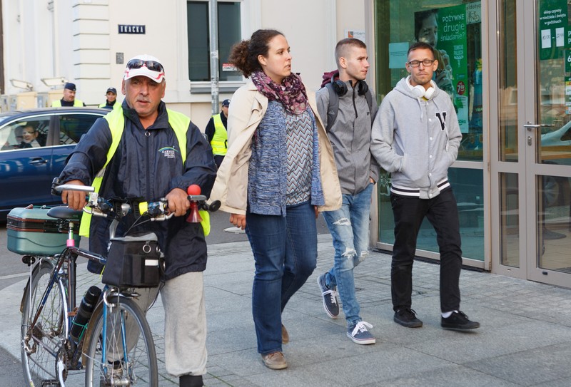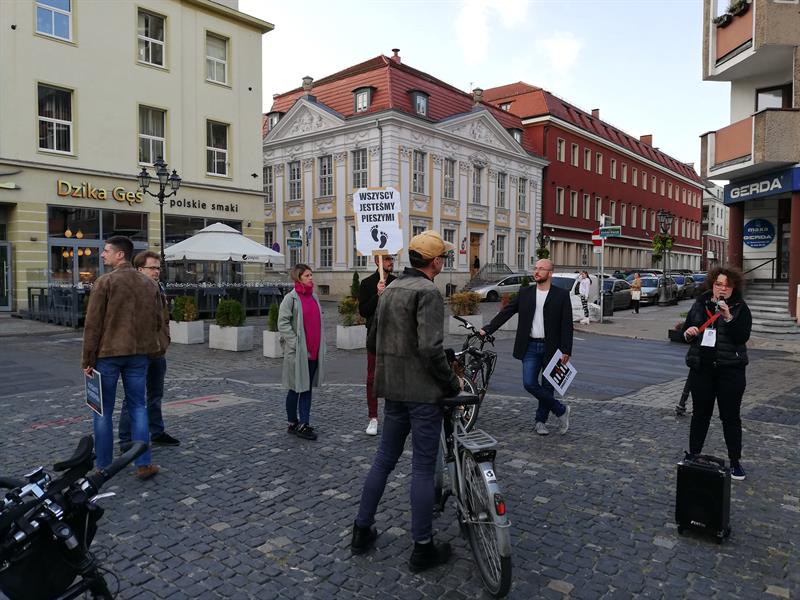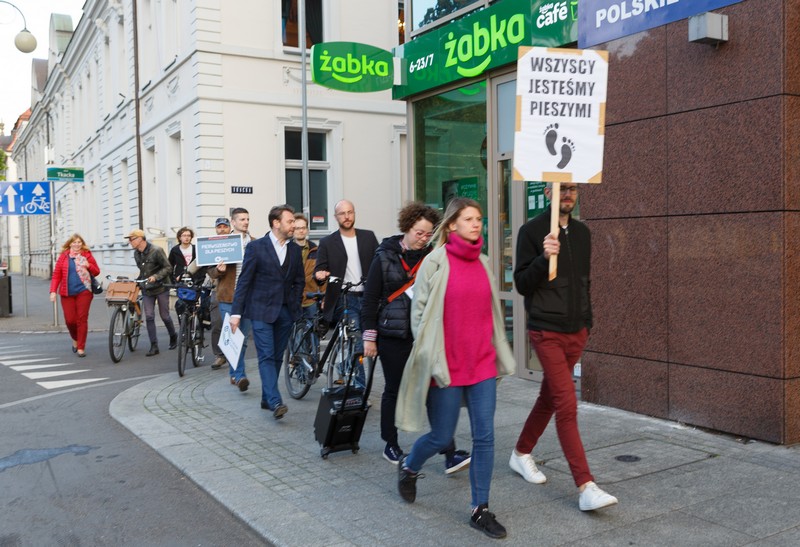 Pod Urzędem byli może na godz. 19:00, to kto i przed kim miał protestować przeciwko spychaniu pieszych na margines uczestników ruchu w mieście.