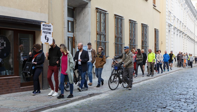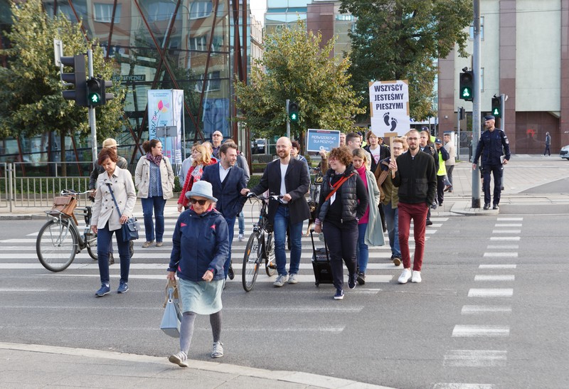 Nawet czas protestu spycha pieszych na szary koniec.