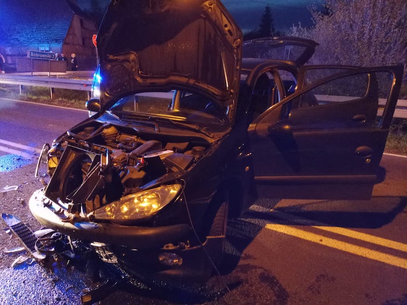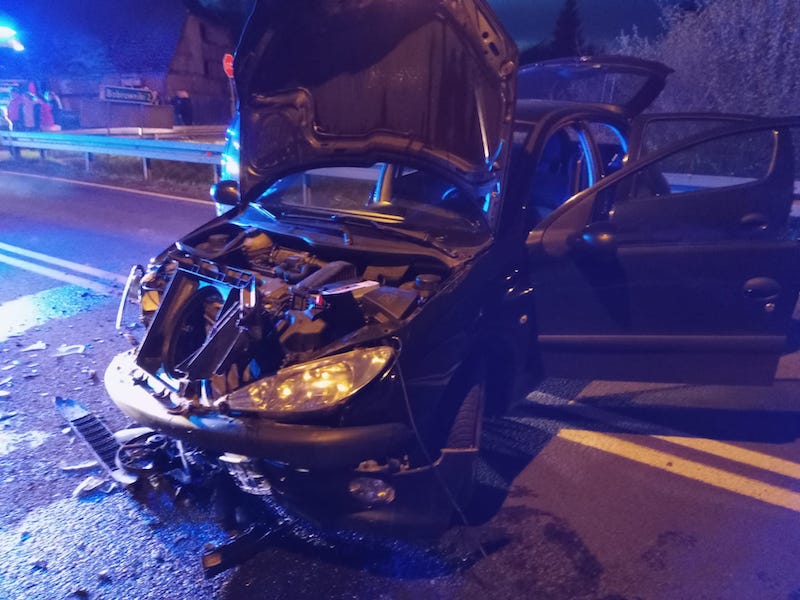 Jak ustalono, kierowca jadący oplem zderzył się czołowo z peugeotem.