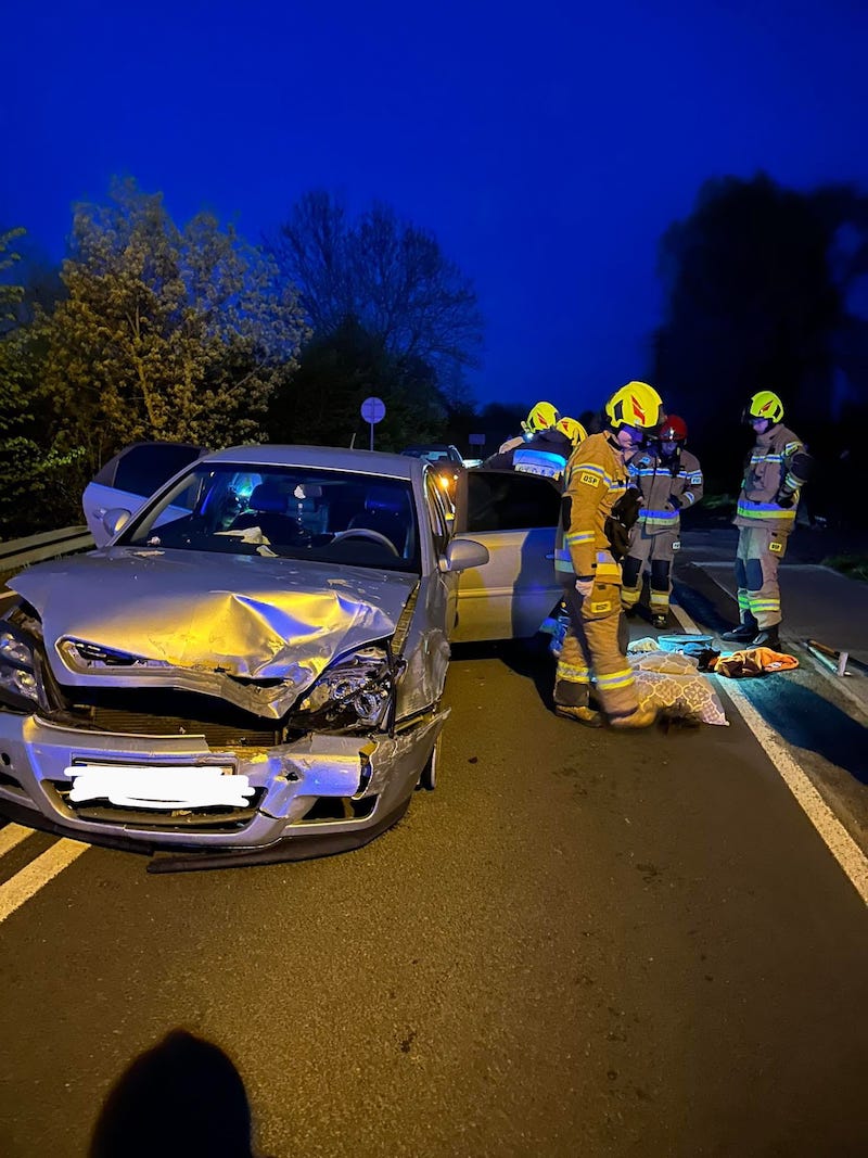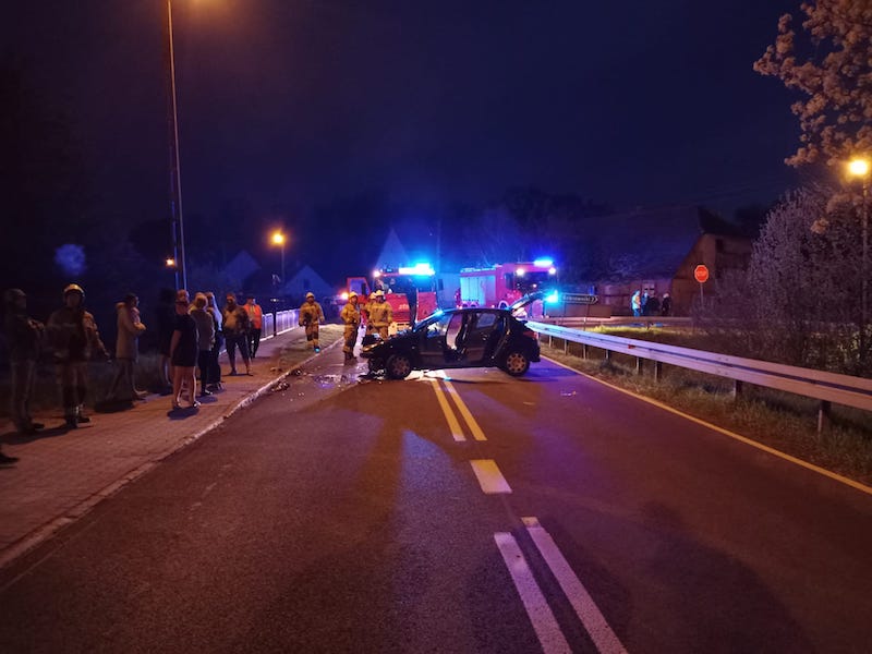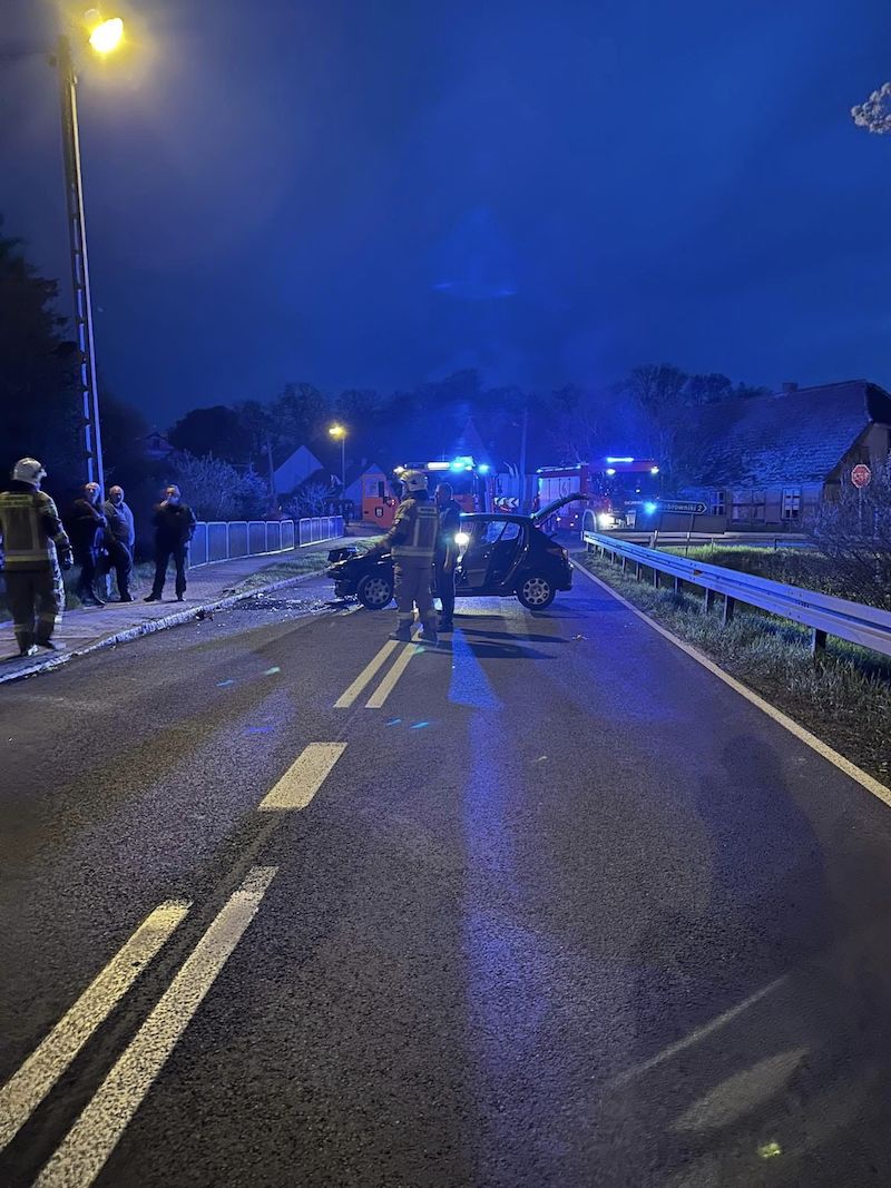 Dwa samochody osobowe zderzyły się czołowo w poniedziałek (1 maja) ok. godz. 21 w Dzwonowie, pow. stargardzki. Na miejsce wypadku zjechały się służby.