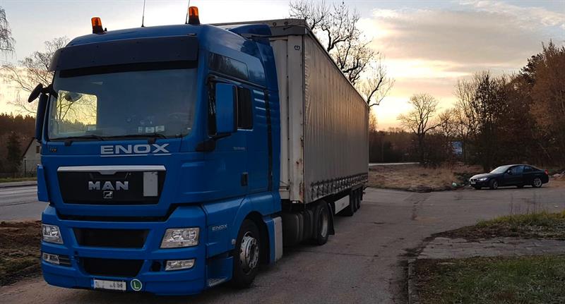 Mundurowi podczas kontroli zatrzymali 34–letniemu Ukraińcowi uprawnienia, odholowali tira, a on został zatrzymany i trafił do policyjnej izby zatrzymań.
