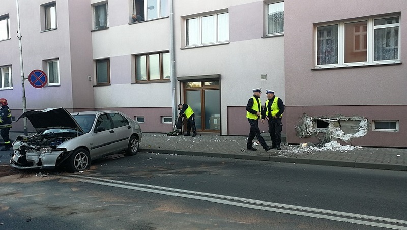 Policjant po służbie zatrzymał pijanego kierowcę samochodu rover. Wjechał nim w blok mieszkalny w Drawsku Pomorskim.