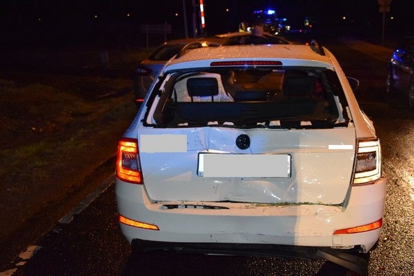 Na przejeździe kolejowym w Słutowie funkcjonariusze z ruchu drogowego kierowali ruchem w związku z awarią rogatek. Za znajdującym się przed przejazdem radiowozem zatrzymały się trzy samochody. Po chwili na tył ostatniego pojazdu najechała ciężarówka, taranując wszystkie auta, po czym odjechała w kierunku Recza.