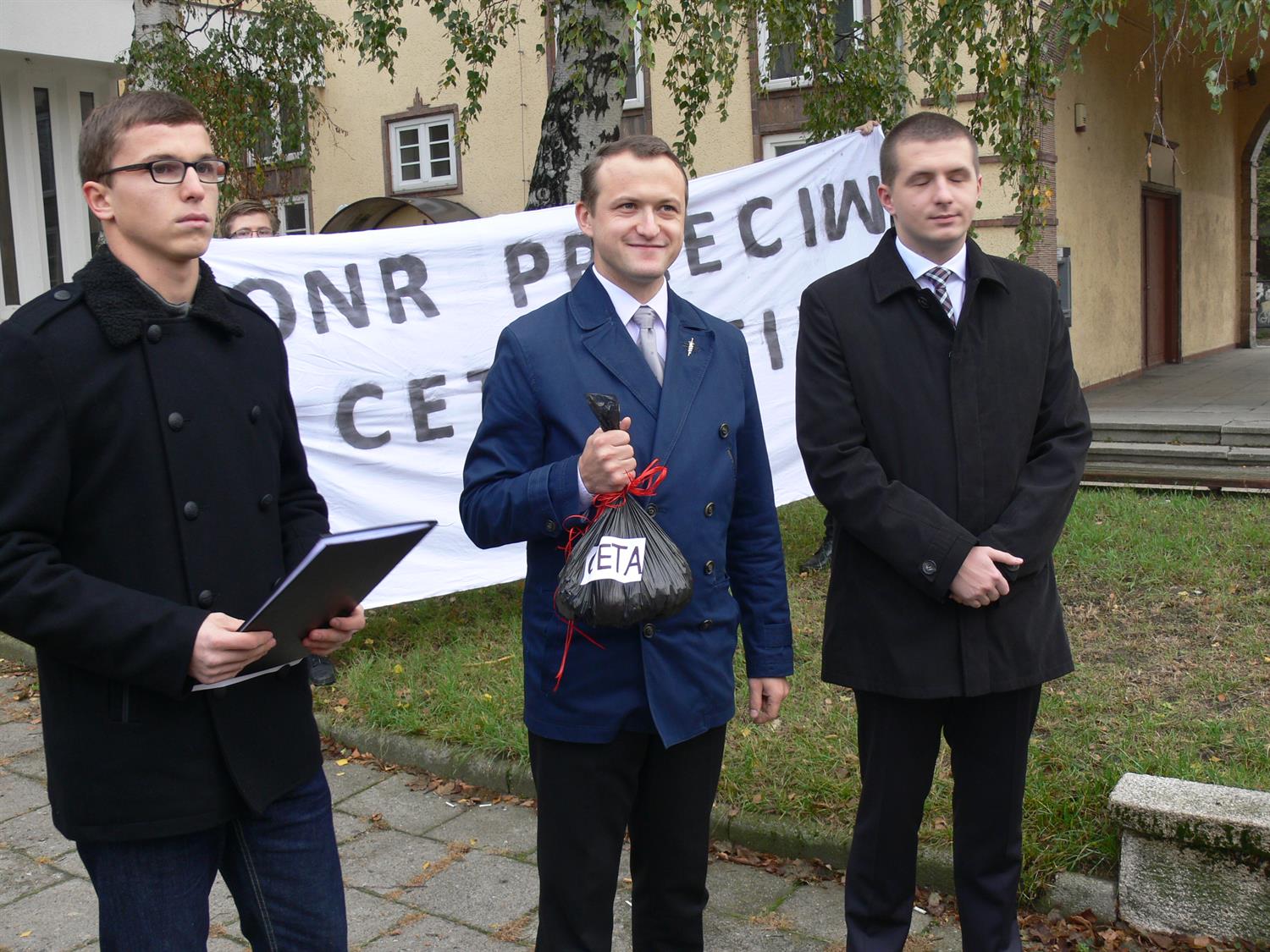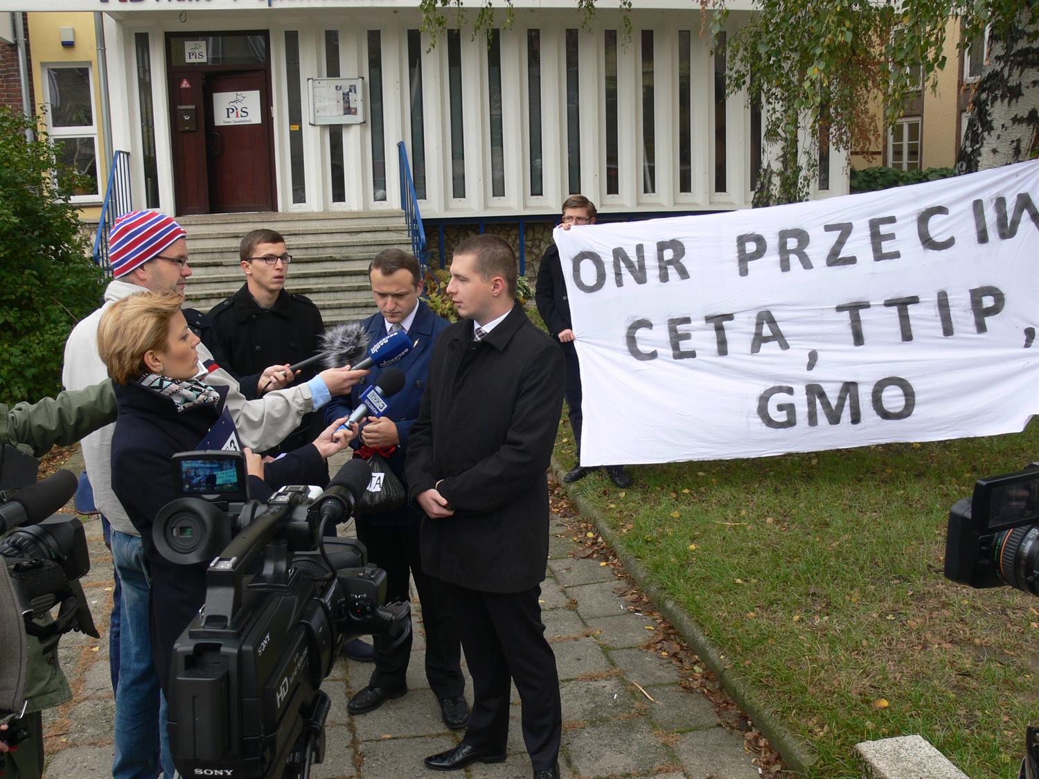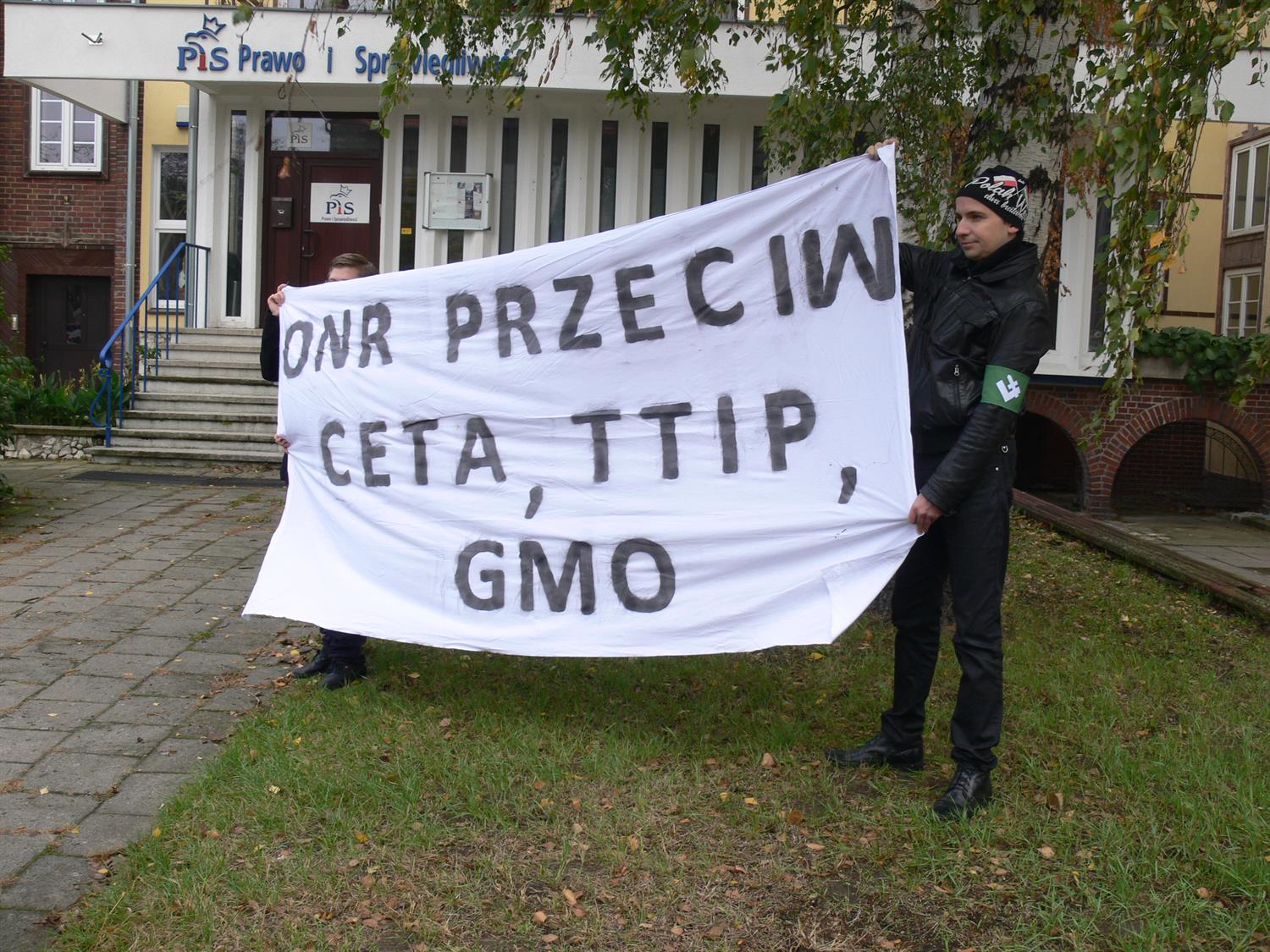 Przeciwko umowom o wolnym handlu z Kanadą i USA protestowali w czwartek członkowie młodzieżowych ugrupowań patriotycznych. Miejscem pikiety była szczecińska siedziba PiS, partii rządzącej.