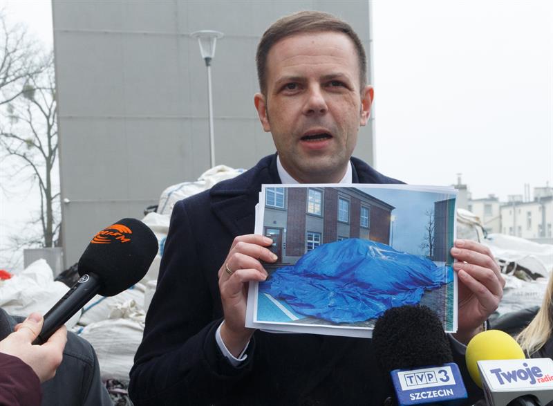 - To smutny obrazek, który na przyjazd króla Danii został przykryty niebieską plandeką - stwierdził radny sejmiku Rafał Niburski.
