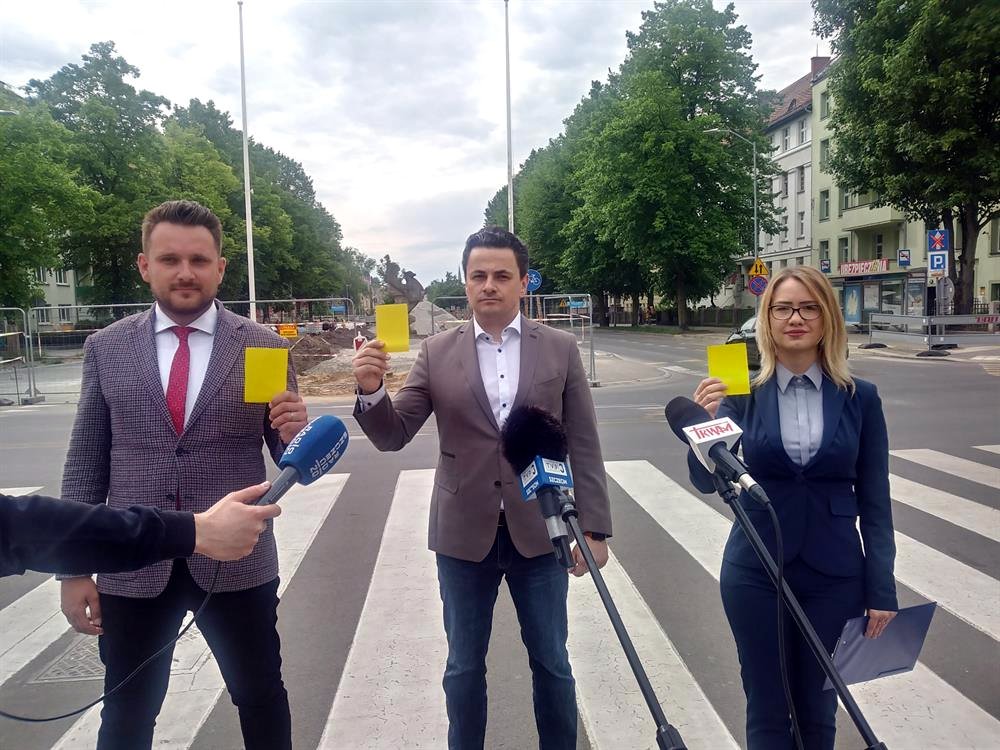 - W związku z chaosem komunikacyjnym w Szczecinie pokazujemy prezydentowi Piotrowi Krzystkowi żółtą kartę - mówili na piątkowej konferencji radni Prawa i Sprawiedliwości. Ponadto zwrócili się z apelem do włodarza miasta, aby jak najszybciej poprawić obecną sytuację na ulicach związaną z remontami.