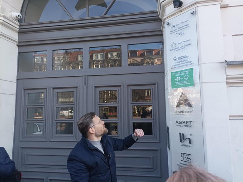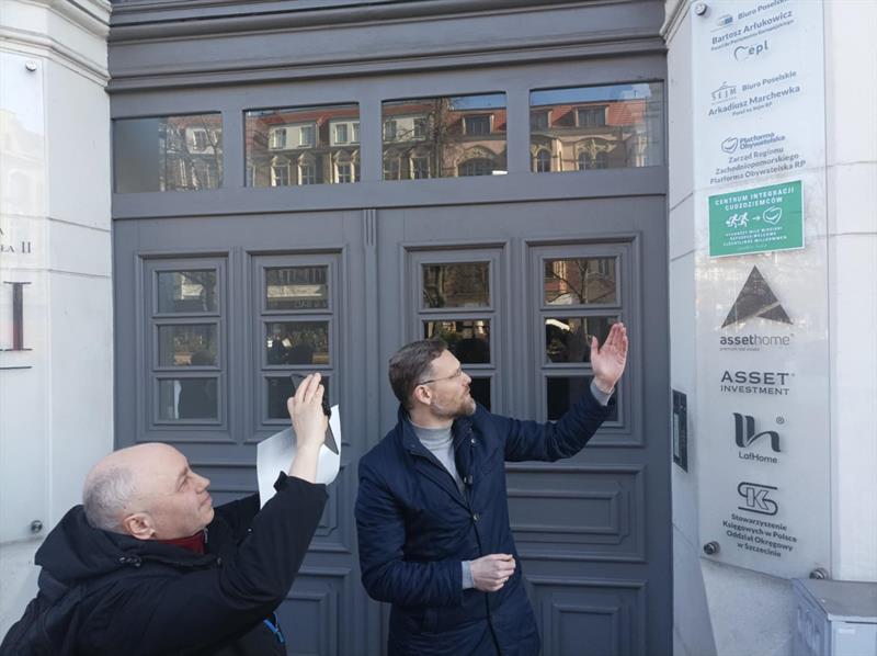 Zachodnia Europa chce rozwiązać problem nielegalnych migrantów, wysyłając ich do Polski, a temu zamiarowi sprzyja rząd Donalda Tuska - to główny komunikat, jaki został sformułowany podczas wtorkowej konferencji prasowej polityków Prawa i Sprawiedliwości przed siedzibą biura Platformy Obywatelskiej w Szczecinie. A poseł Zbigniew Bogucki pozostawił na fasadzie biura pewien drobiazg.