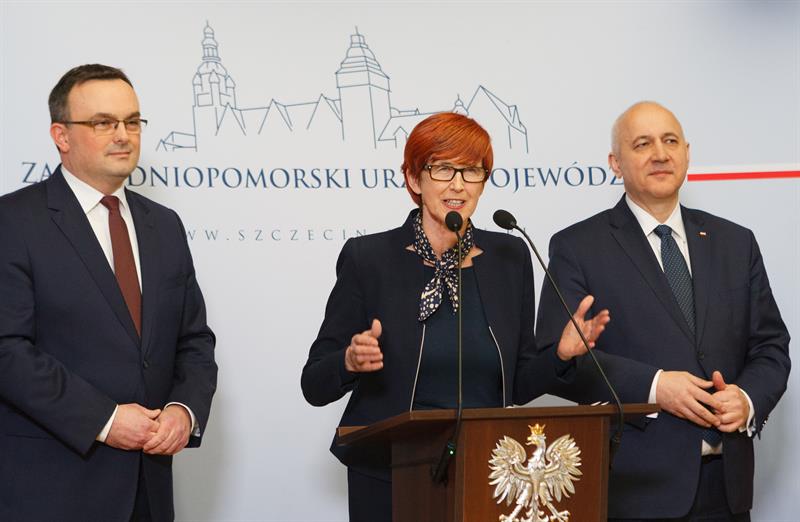 Na zdjęciu: (od lewej) Wojewoda Tomasz Hinc, minister rodziny, pracy i polityki społecznej Elżbieta Rafalska oraz minister spraw wewnętrznych Joachim Brudziński mówili o polityce społecznej zjednoczonej prawicy.