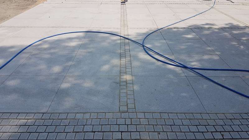 Po zerwaniu oraz uprzątnięciu starej nawierzchni, plac odwodniono i wyrównano teren.