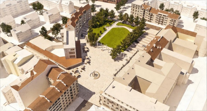Włoski charakter placu będzie swietnie współgrał (zupełnie przypadkowo) z istniejacymi tam dwoma restauracjami. Dzięki Bogu, że swego czasu ich własciciel nie zdecydował się na otwarcie sushi-barów, bo mielibysmy teraz projekt w stylu japońskim (z pokemonem na fontannie).