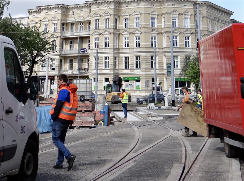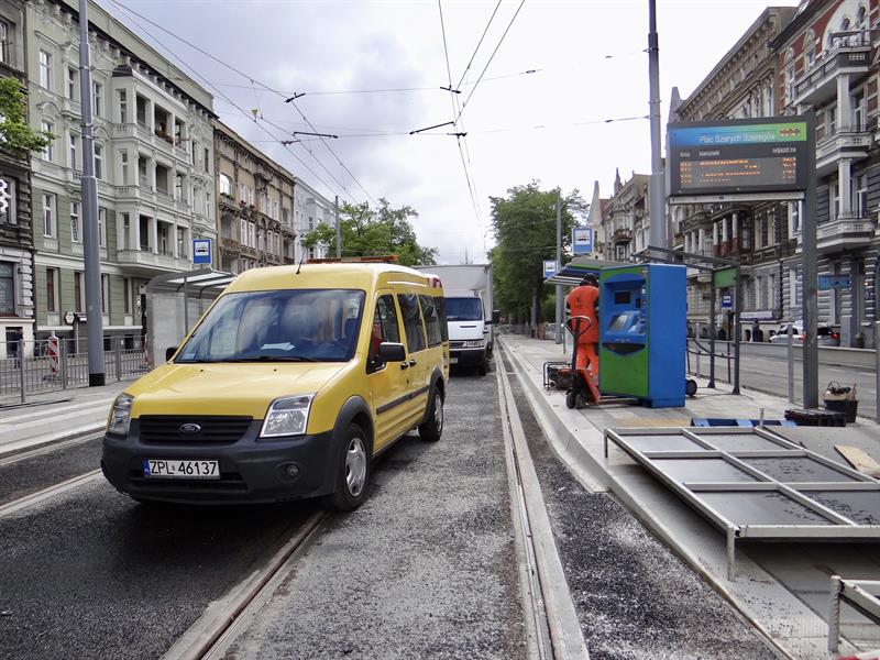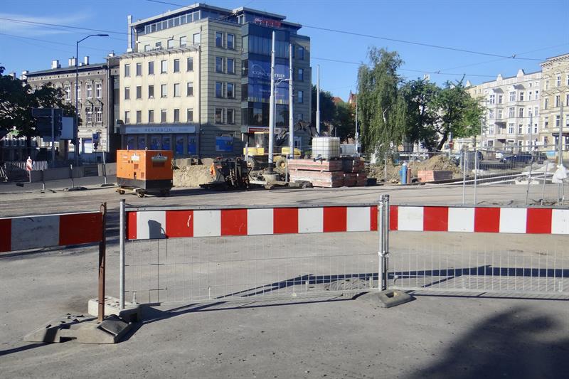 Od 1 czerwca zmienia się kolejny raz organizacja ruchu w rejonie przebudowywanego torowiska na szczecińskim placu Szarych Szeregów i w al. Marszałka Józefa Piłsudskiego. Odblokowany zostaje od strony tej ostatniej przejazd dla samochodów po nowej nakładce. Poza wyłączonym nadal z ruchu wewnętrznym pasem wokół wyspy ronda zamknięty jest teraz dla aut przejazd przez tory na wysokości al. Piastów, gdzie kontynuowane są prace. A z tramwajów na swoją stałą trasę Głębokie - Potulicka powróciły na razie te kursujące na linii 1. Nowymi odcinkami torowisk jadą też piątki i jedenastki.