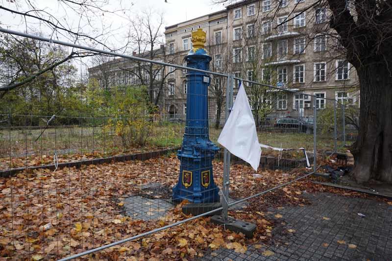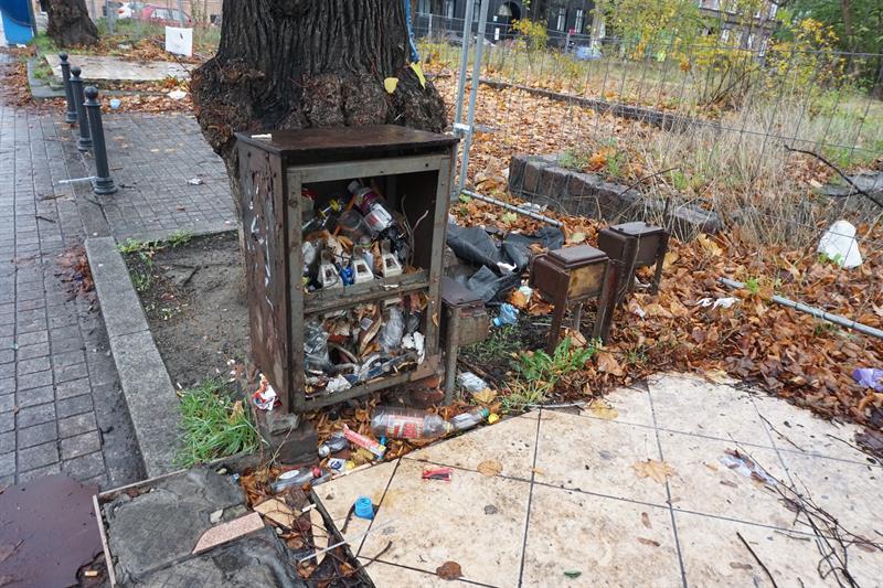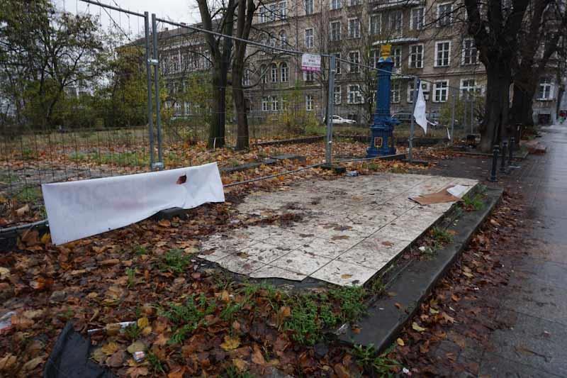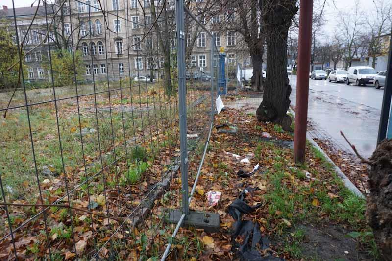 Wszędzie walają się liście, butelki i resztki wyborczych banerów. Na jednym z nich widać hasło „Nasza bezpieczna codzienność”. Z powodzeniem można je zamienić na „Nasza brudna codzienność” – będzie jak ulał pasować do tego, co zastaniemy na placu. Banery, a raczej to, co z nich zostało, nie powinny tam wisieć. I nie chodzi tylko o aspekt estetyczny, ale o fakt, że komitet wyborczy powinien zabrać swoje materiały w ciągu 30 dni po niedzieli wyborczej. Termin właśnie minął, a smutne resztki nadal wiszą i nie sławią już kandydatów…