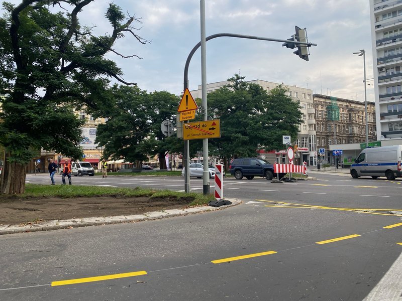 Od wczesnego rana w środę (15 bm.) nieprzejezdny jest fragment jezdni przez środek wyspy pl. Zgody, gdzie drogowcy zaczęli urządzać zaplecze przebudowy. Na jezdni wokół placu pojawiło się też tymczasowe oznakowanie pasów i teraz tylko nią odbywa się ruch samochodów. Kolejne zmiany, w tym całkowita blokada odcinka al. Wojska Polskiego od skrzyżowania z ul. Jagiellońską do pl. Zgody w obu kierunkach planowana jest na piątkowe popołudnie (17 bm.) ok. godz. 18.
