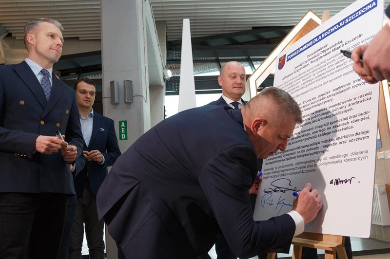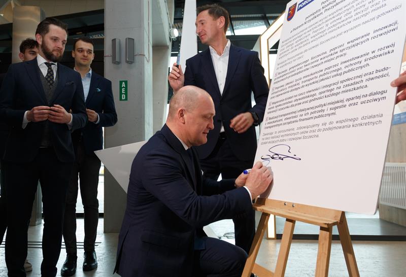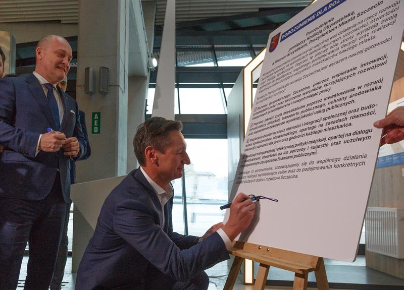 Jak mówił, celem współpracy PO z prezydentem Piotrem Krzystkiem jest zrównoważony rozwój Szczecin, rozwój gospodarczy - szczególnie w zakresie Odnawialnych Źródeł Energii. Szczegóły mamy poznać w toku kampanii.