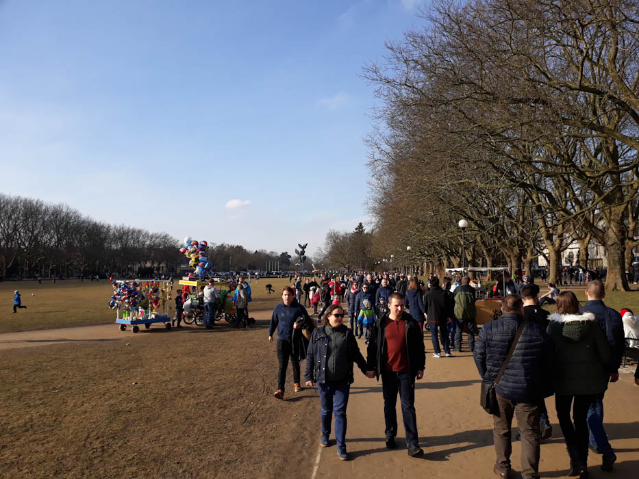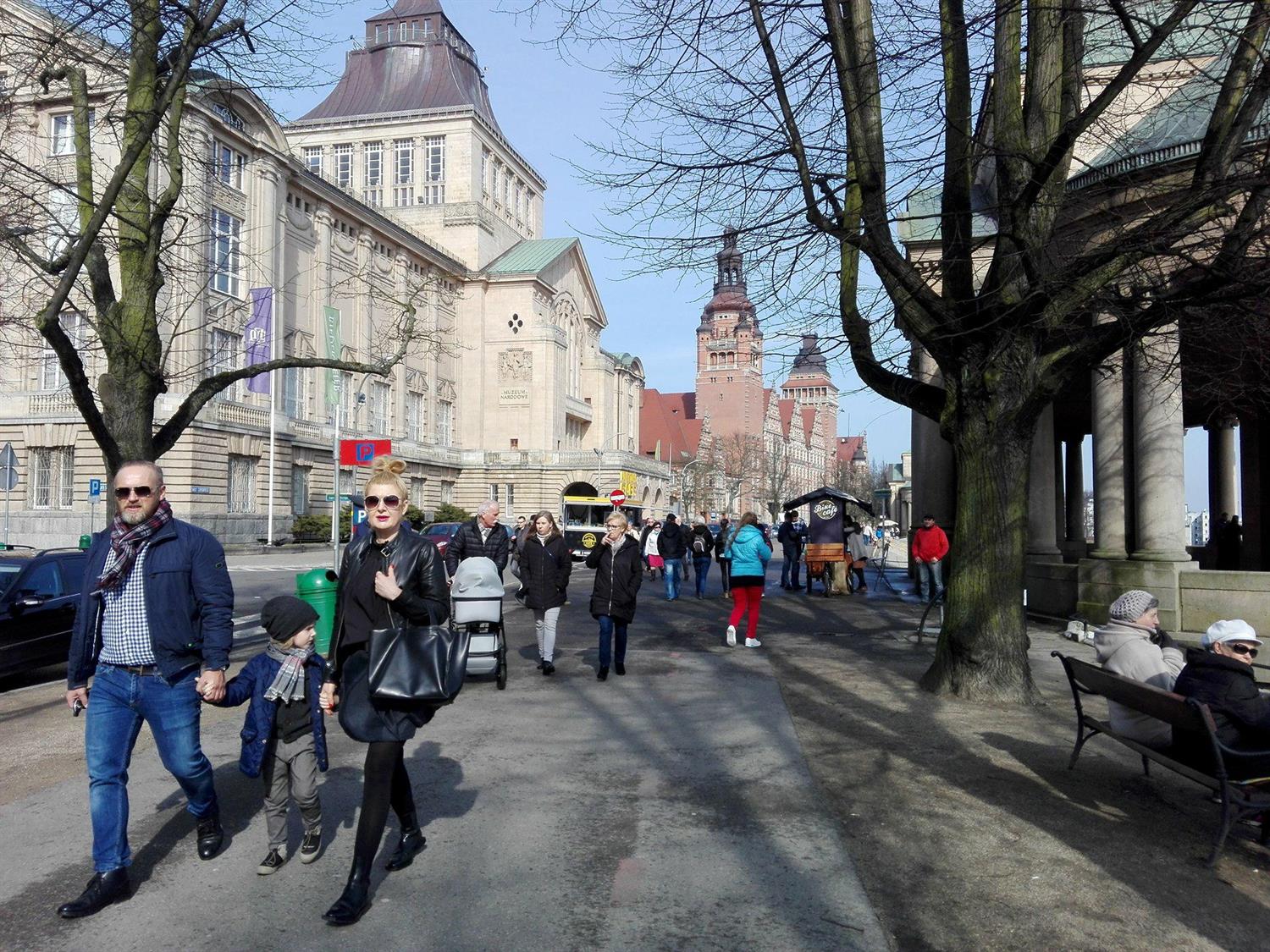 Piękna niedzielna pogoda od rana zachęca do spacerów i rekompensuje nieco niezadowolenie tym, którym doskwiera dzisiaj brak możliwości zrobienia zakupów. Galerie handlowe są otwarte, ale niemal puste, bo dostępne tylko w bardzo ograniczonym zakresie. Za to w plenerze - choćby na Jasnych Błoniach i Wałach Chrobrego - tłoczno. Żal z takiej aury nie skorzystać...