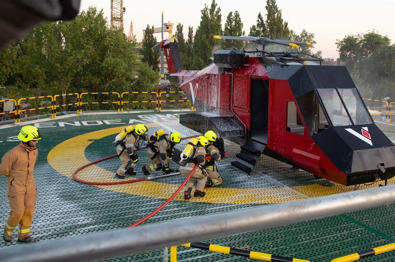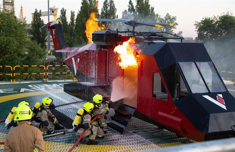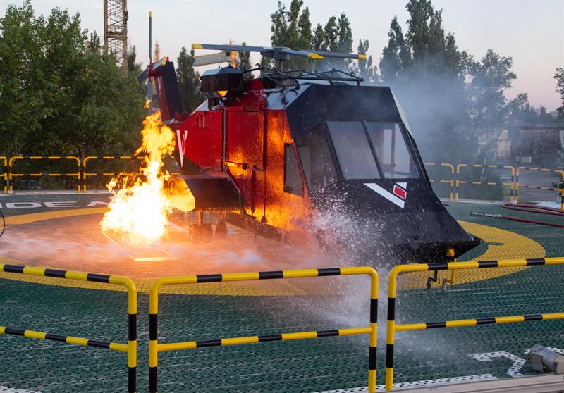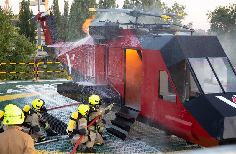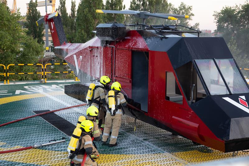 Obok lądowiska można też zobaczyć helikopter przewrócony na bok, w którym odbywać się mają symulacje ewakuacji z rozbitej i wywróconej maszyny. Infrastruktura ma oferować wiele scenariuszy pożarów, dzięki czemu kursanci będą mogli trenować na realistycznym lądowisku z prawdziwymi płomieniami, w maksymalnie realistycznych warunkach.