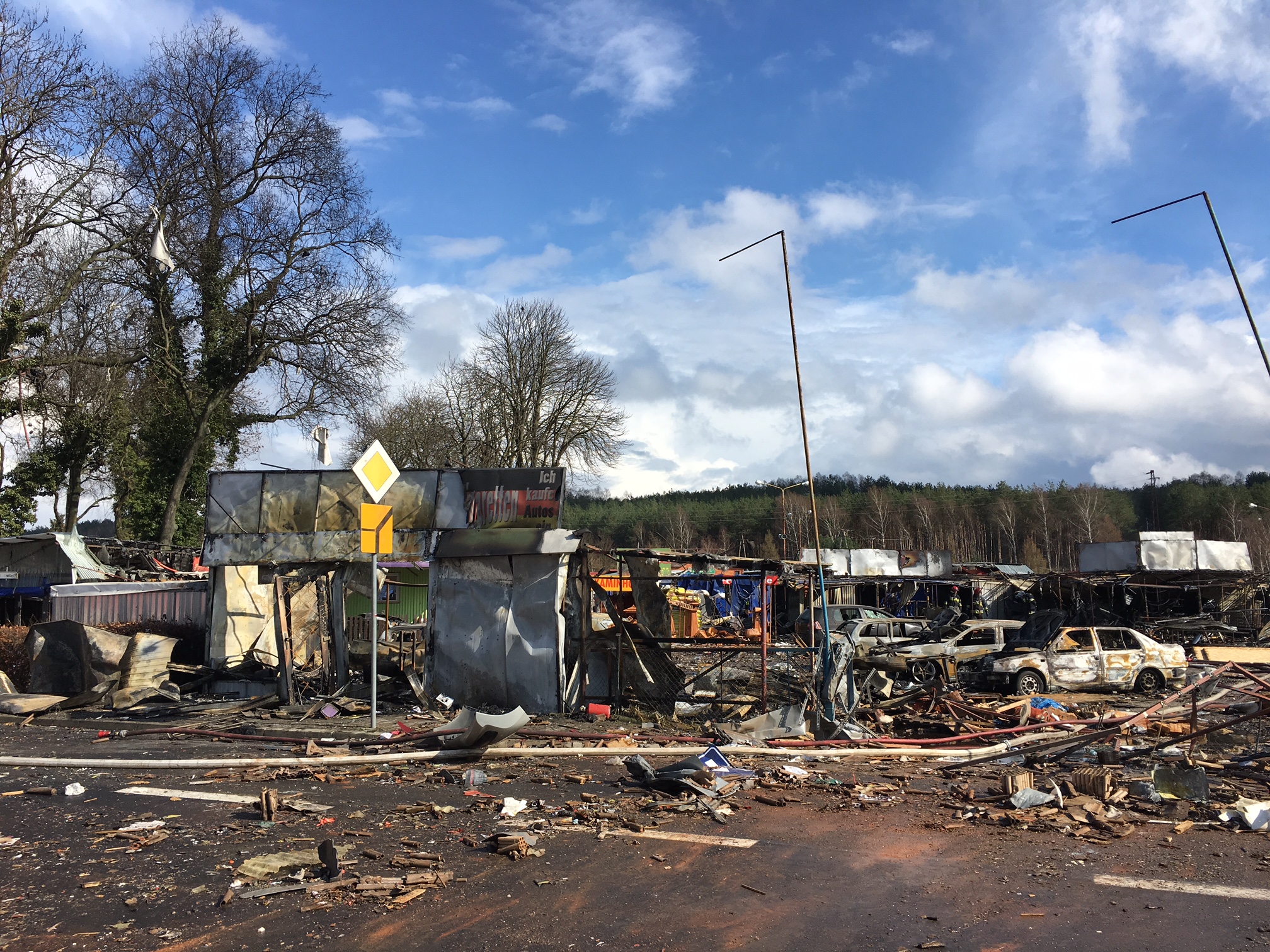 Według niepotwierdzonych informacji, źródło eksplozji, od której zaczął się potężny pożar na targowisku, miało znajdować się na prywatnej części targowiska, należącej do spółki Canpol. Stało tam kilkanaście kontenerów, a według planu miejscowego powinien być parking. Stamtąd ogień rozprzestrzenił się na targowisko gminne.