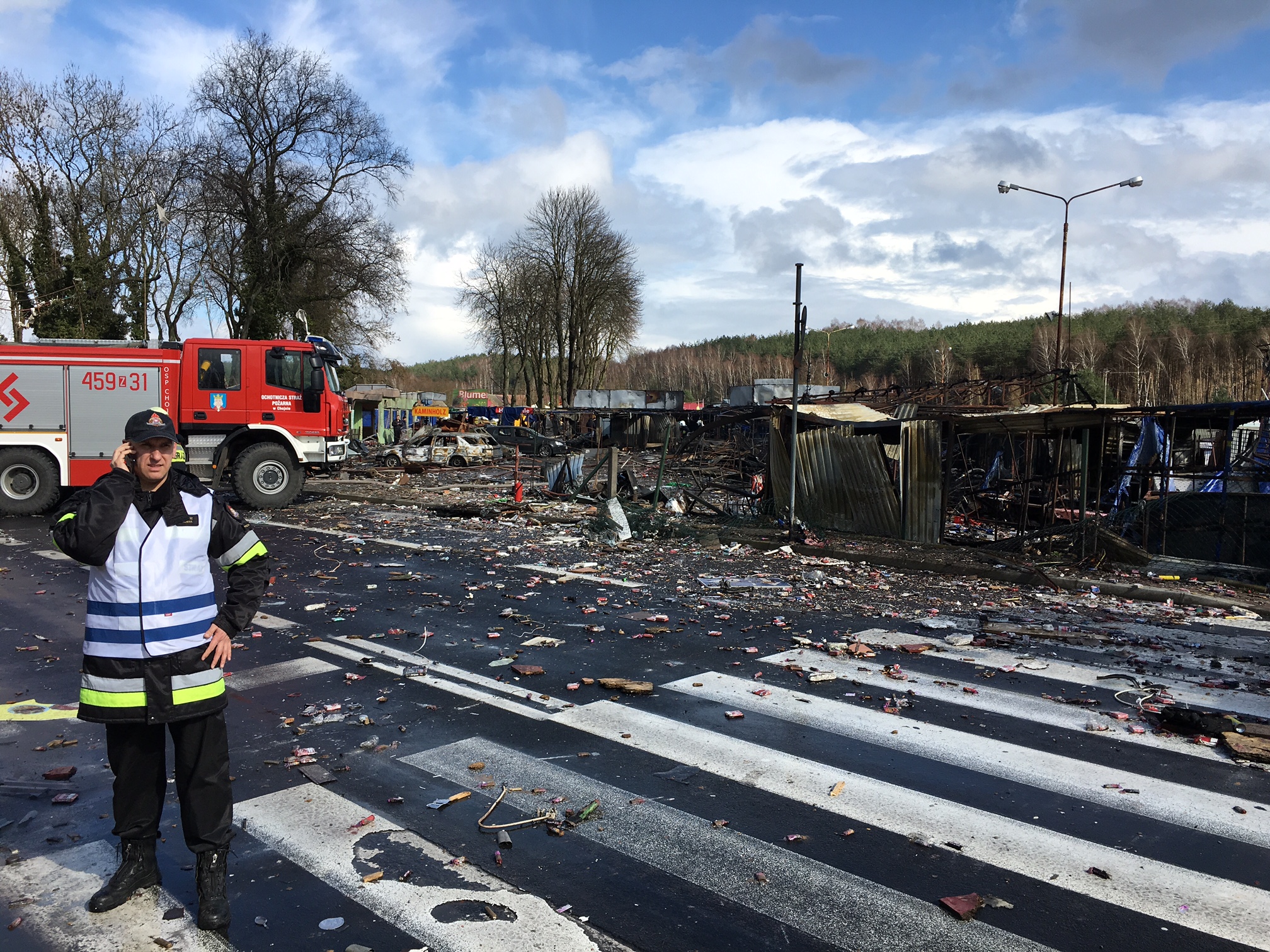 Z relacji strażaków i kupców, bezpośrednich świadków wydarzeń, które rozegrały się we wtorek tuż przed 13. wynika, że najpierw nastąpiła potężna eksplozja. Siła wybuchu była tak duża, że fragmenty okolicznych straganów rozrzucone zostały w promieniu co najmniej stu metrów. Odłamki wbijały się w ściny i dachy okolicznych imbisów, kiosków a nawet budynków mieszkalnych.