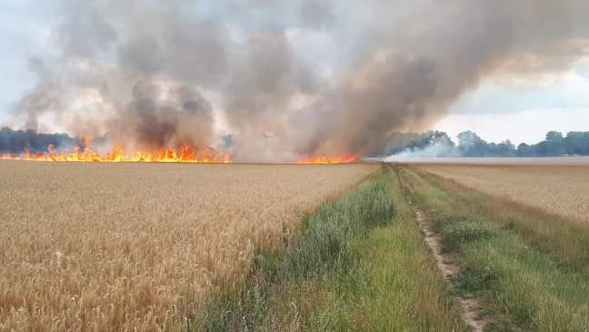 Płonie pole ze zbożem w Świerczewie (gmina Nowogard).