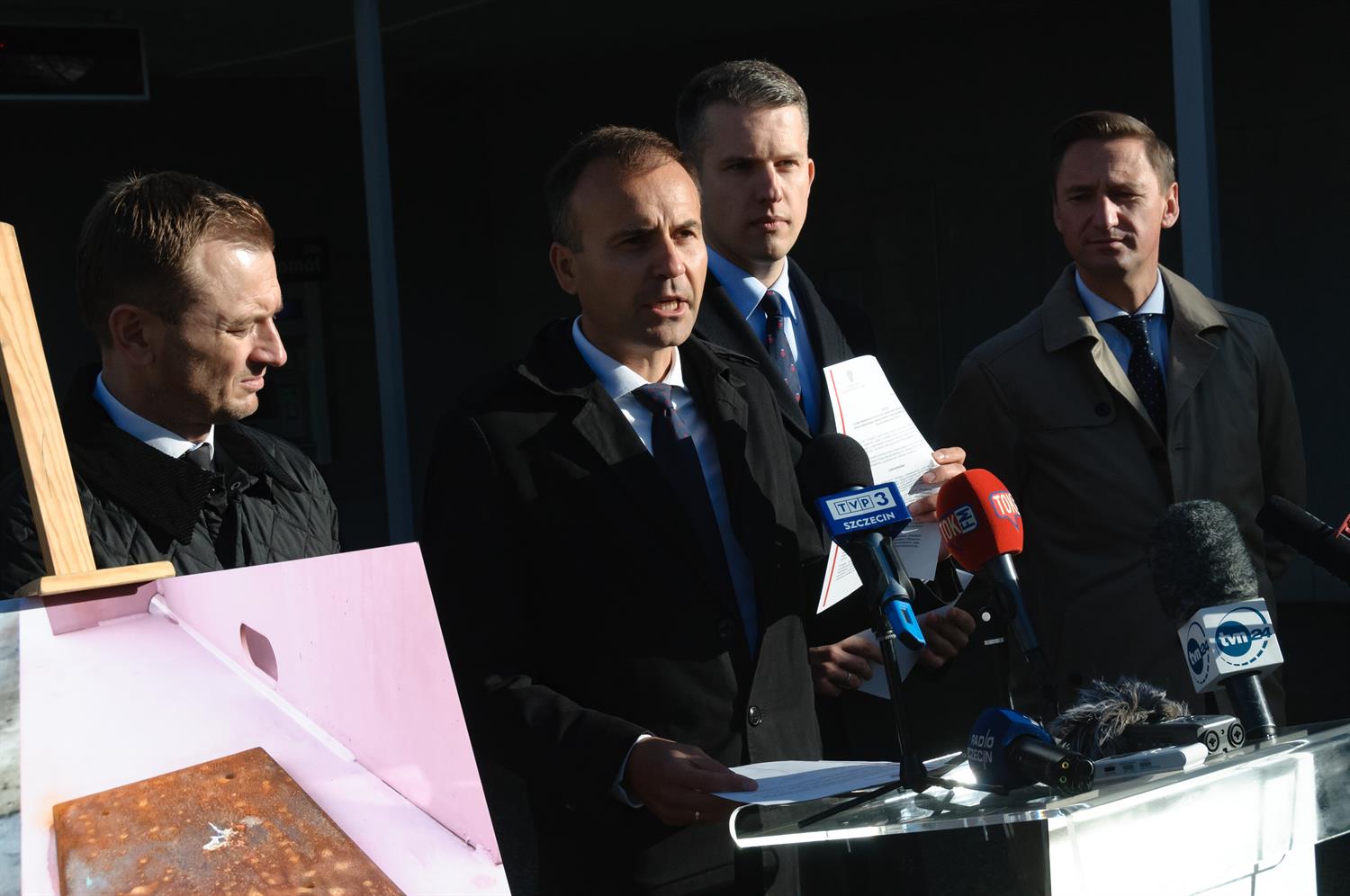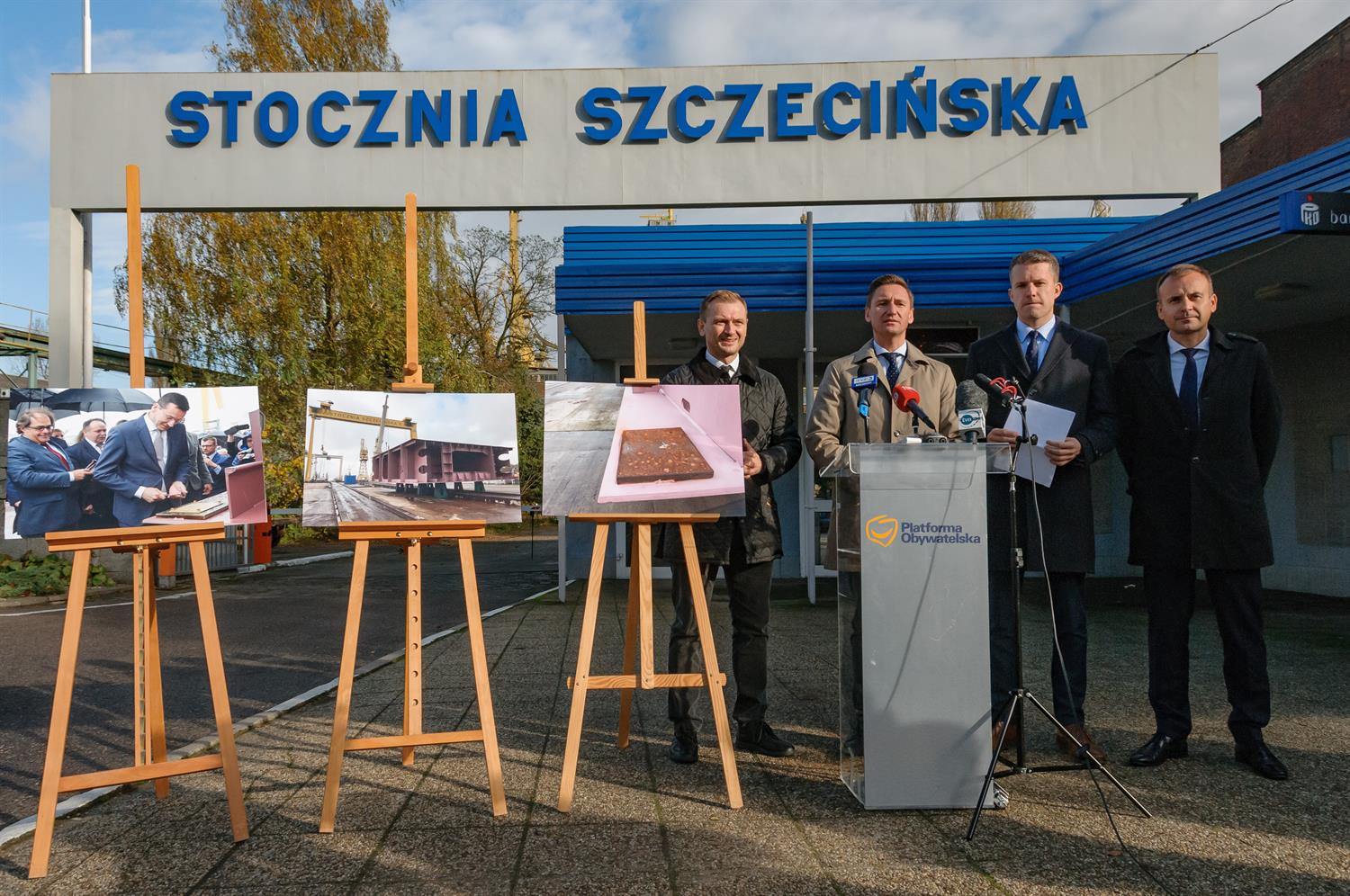– Cztery miesiące temu hucznie, w obecności oficjeli, położono stępkę i postanowiliśmy sprawdzić, jak wygląda budowa promu – mówił w poniedziałek (6 listopada) na konferencji prasowej przy bramie Stoczni Szczecińskiej Olgierd Geblewicz, szef szczecińskiej PO.