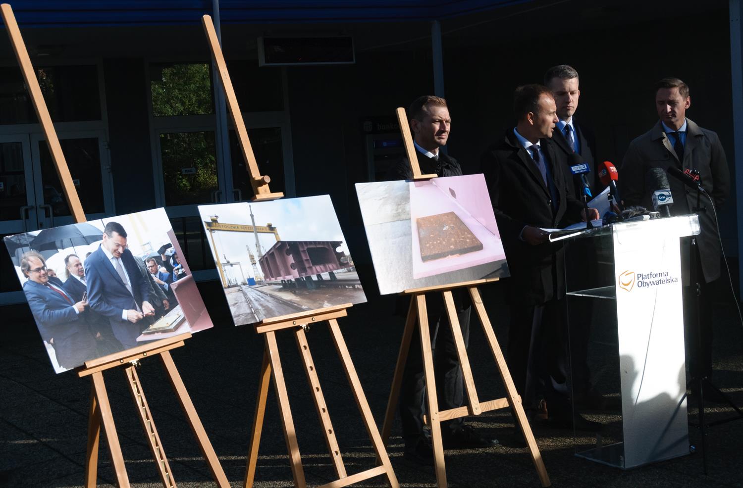 – Zobaczyliśmy, co się tam dzieje i zamiast dźwięków i hałasów giętej blachy, zamiast hałasu młotków, zamiast pracujących stoczniowców, zobaczyliśmy pustą pochylnię i usłyszeliśmy hulający wiatr – opowiadał poseł Arkadiusz Marchewka. – Miejsce, w które premier Morawiecki razem z politykami PiS-u stukał młotkiem symbolicznie, dzisiaj przypomina kawałek blachy ze składowiska złomu. Nie możemy pozostać obojętni na to, co się dzieje.