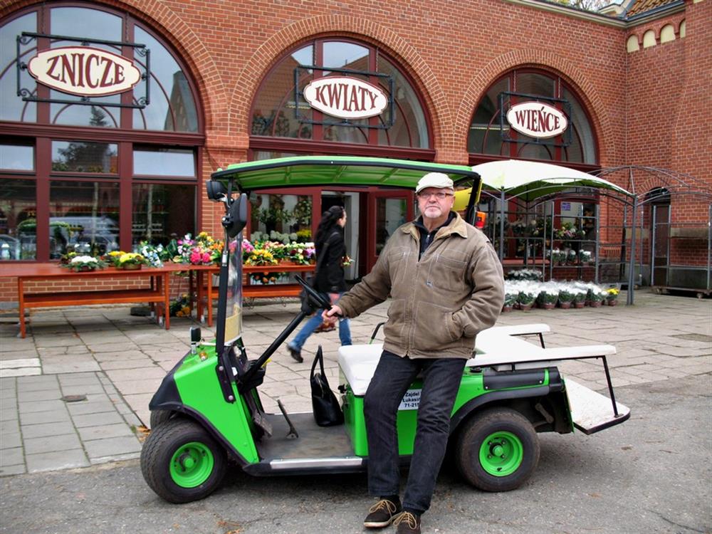 Po Cmentarzu Centralnym jeździ elektryczna taksówka